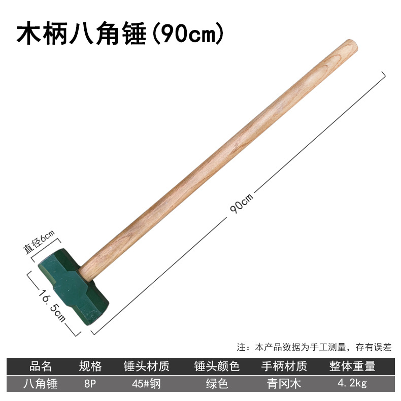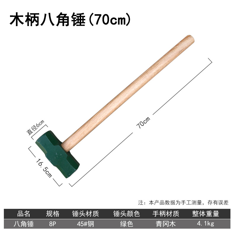 녹색 70cm 팔각형 망치 8 파운드 망치 90cm 나무 손잡이 강철 망치 홍수 통제 및 재난 구호 훈련 도구 구조