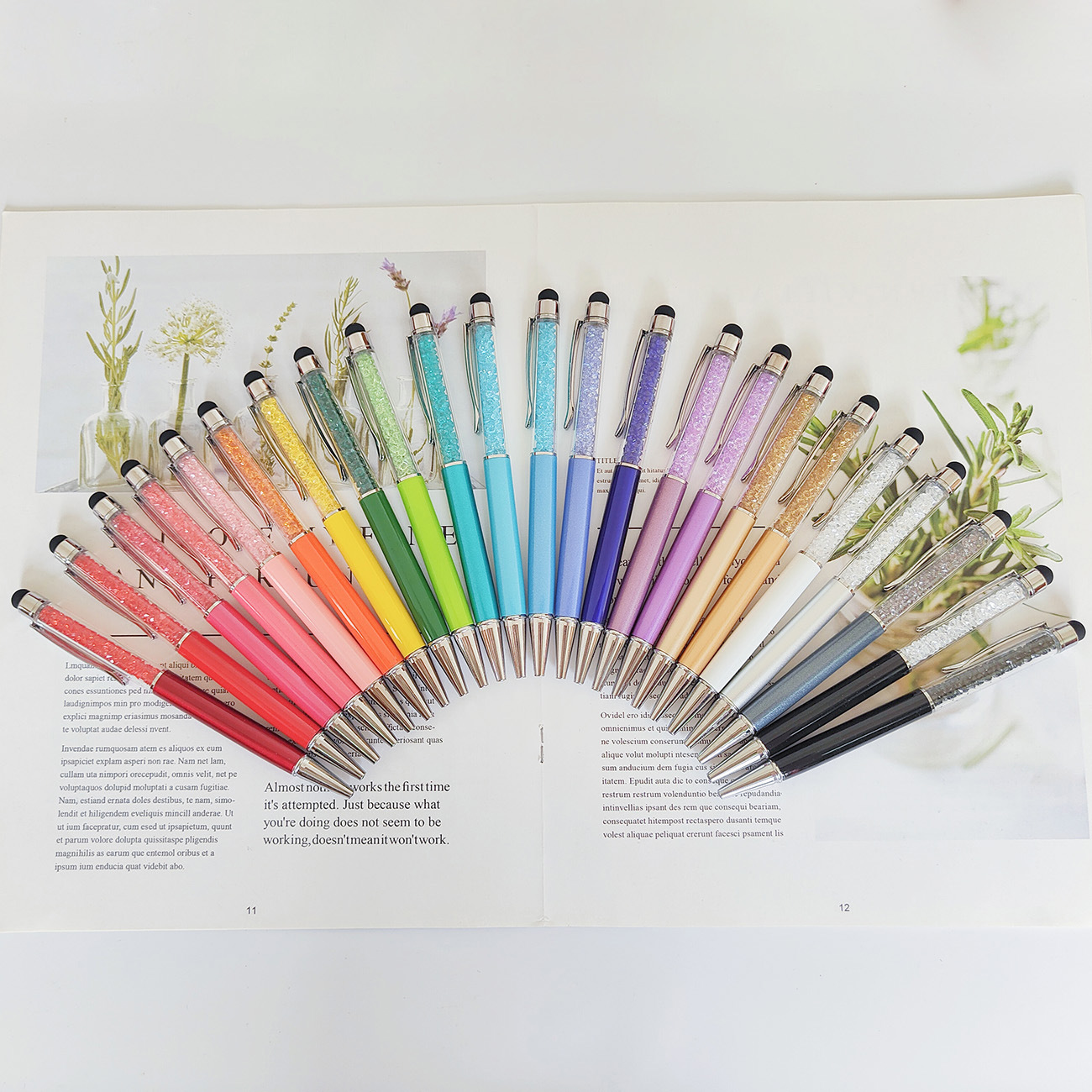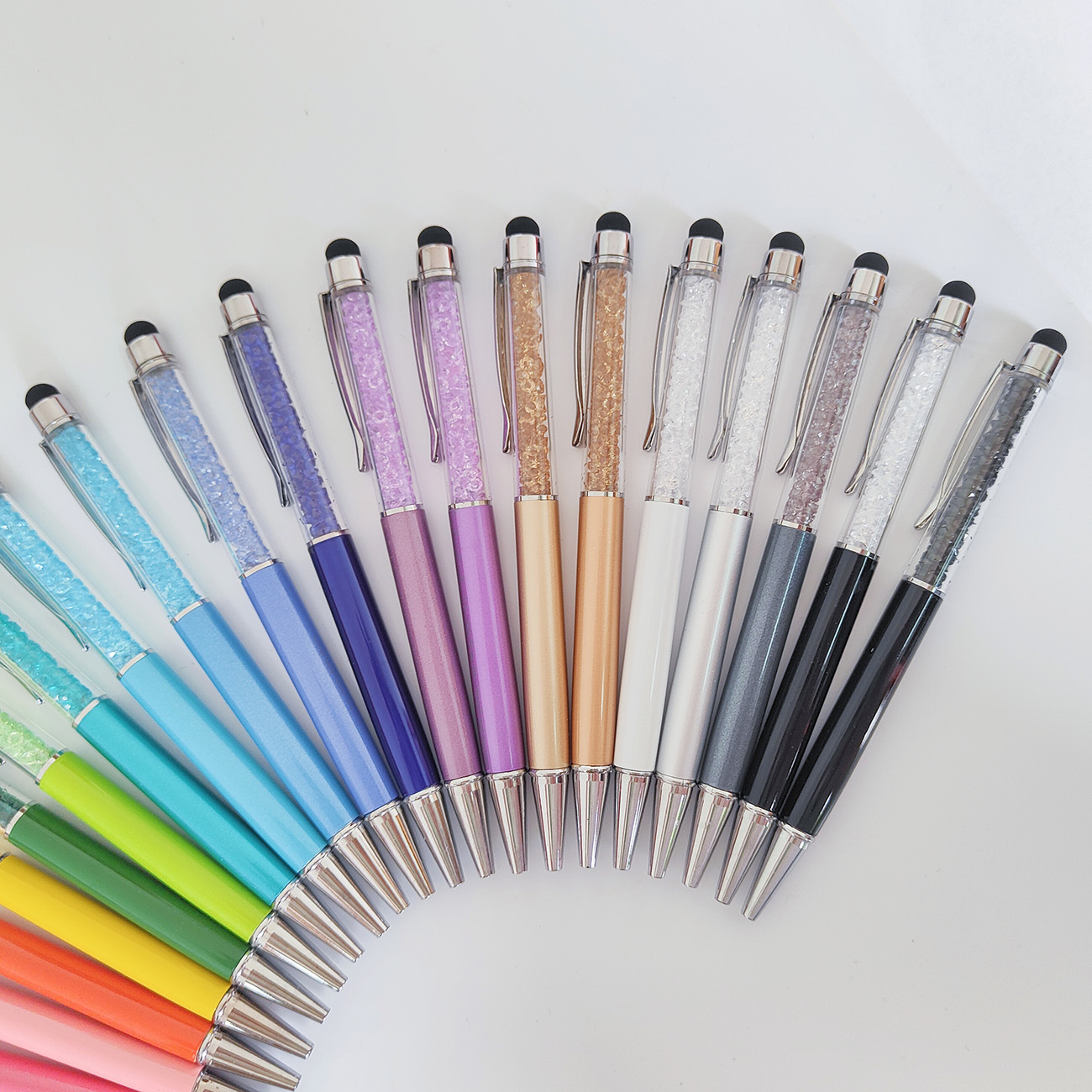 다이아몬드 크리스탈 터치 스크린 광고 펜 재고 있음 공장 도매 용량 성 다이아몬드 금속 볼펜 사무용품 선물