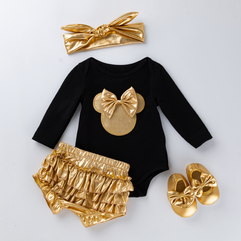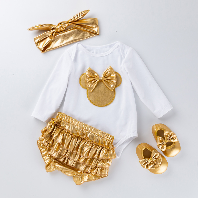 크로스 국경 가을과 겨울 새로운 아동 의류 소년과 소녀 아기 긴 소매 만화 카키 골드 pp 바지 4 종 세트 도매 대외 무역