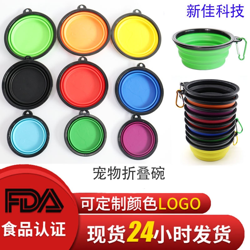 热销亚马逊便携宠物硅胶折叠碗 小号大号折叠狗盆 户外喝水硅胶碗