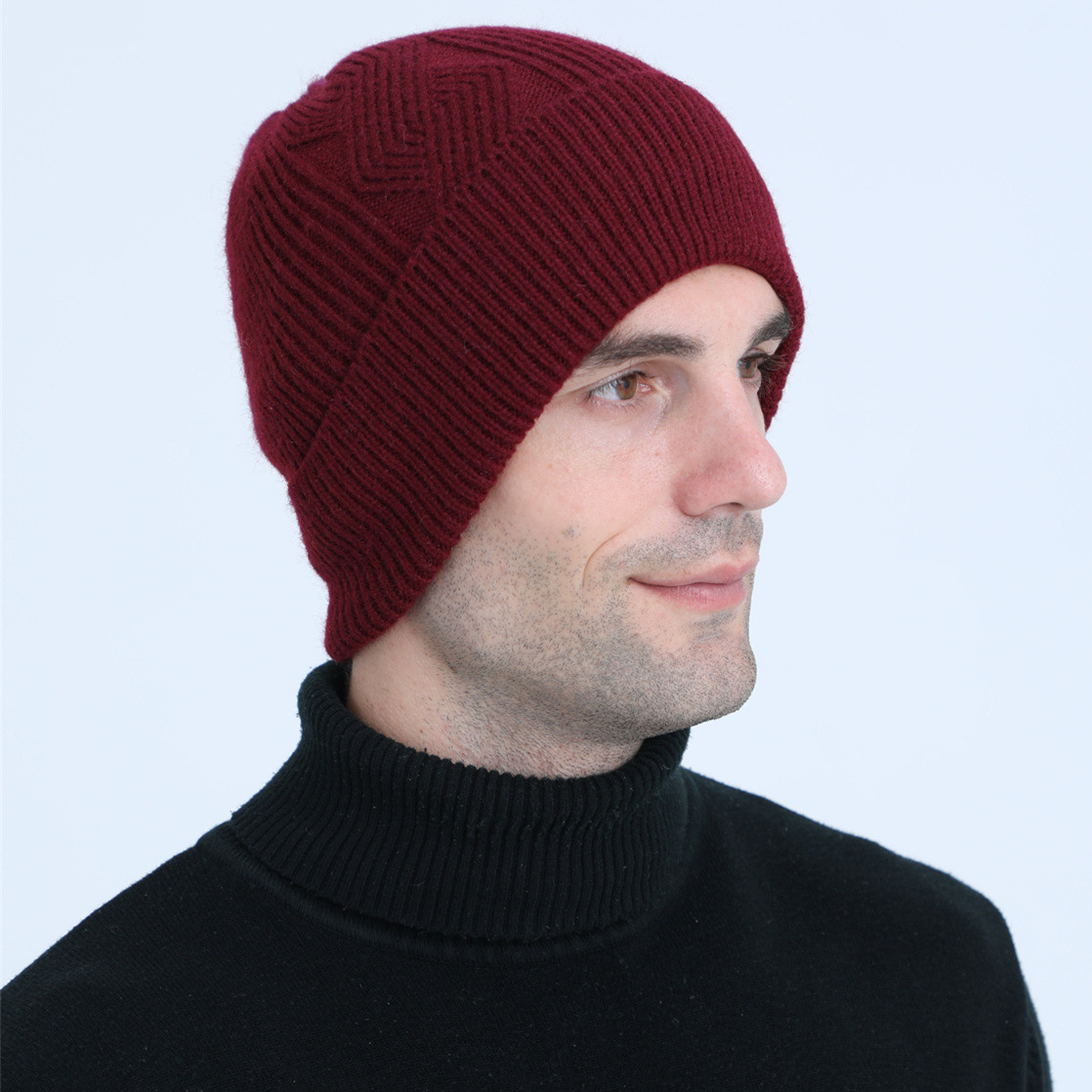 가을과 겨울 새로운 크로스 보더 남자의 기모 두꺼운 트위스트 니트 따뜻한 모자 양모 원사 사이클링 이어 캡