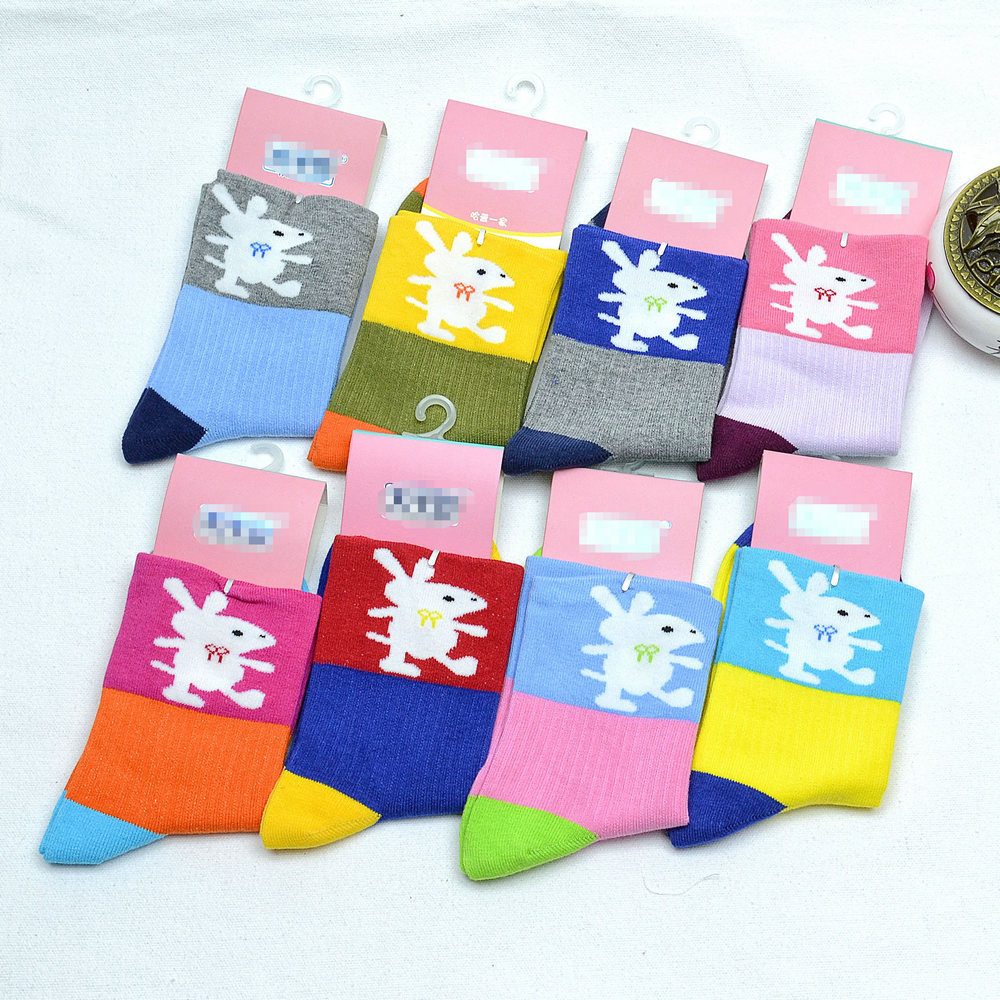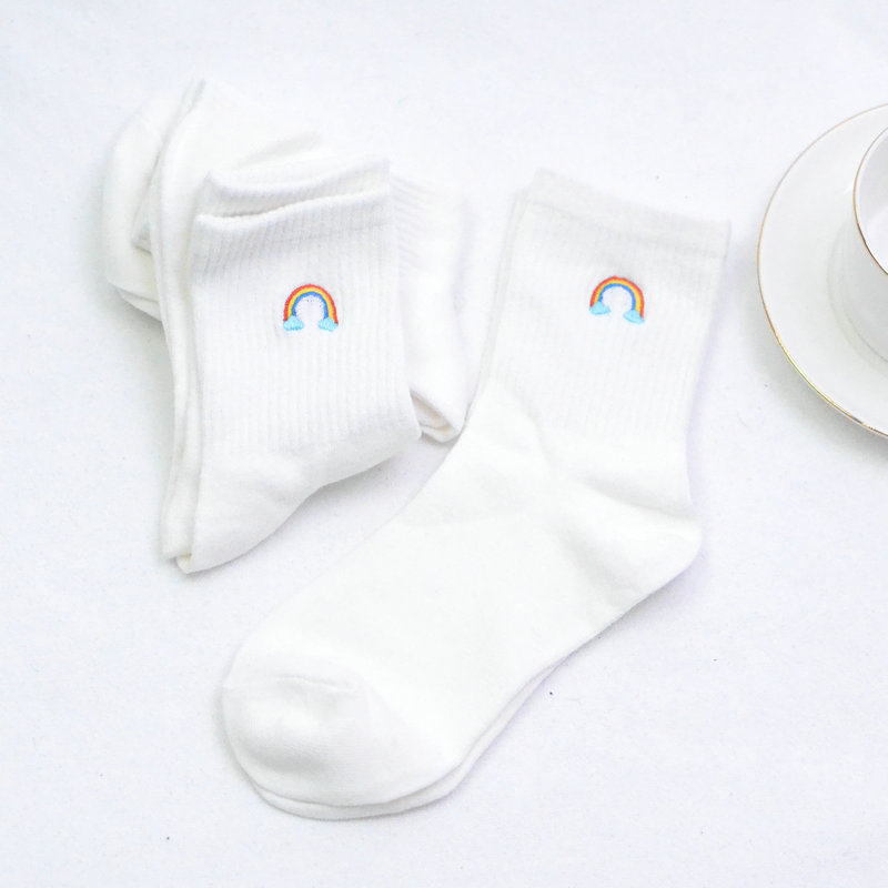 • 신장 코튼 여성용 화이트 미디엄 양말 레인보우