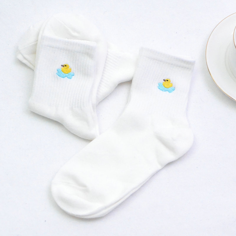 • 신장 면화 여성용 흰색 중간 길이 양말 GO