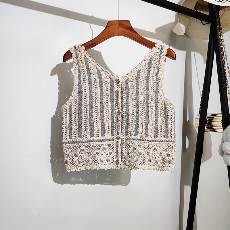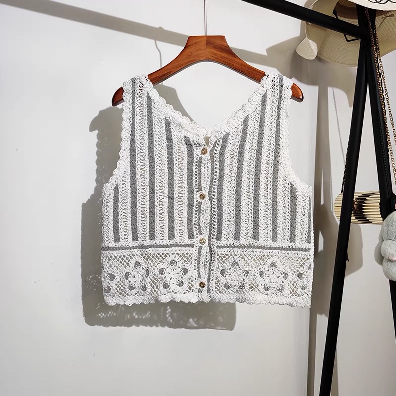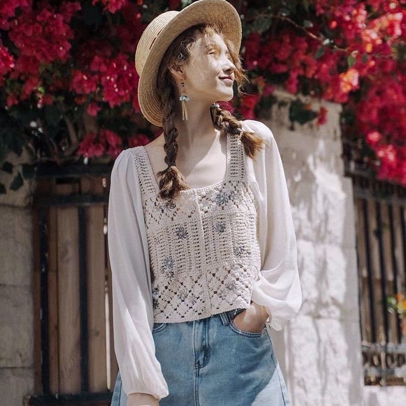 셔츠 여자의 가을 긴팔 탑 디자인 틈새 V-넥 빈티지 크로 셰 뜨개질 중공 쉬폰 셔츠 짧은 셔츠스토어 가기