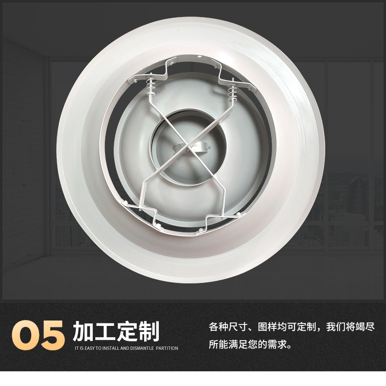 둥근 디퓨저 중앙 에어컨 공기 배출구 알루미늄 합금 방수 루버 공장 직접 공급 루버 천장