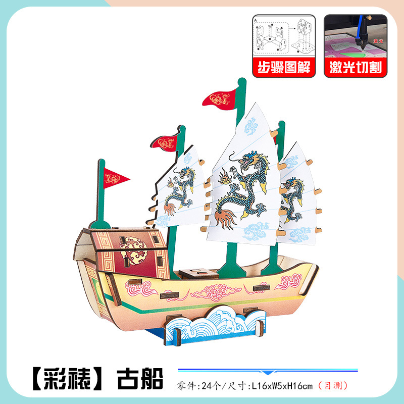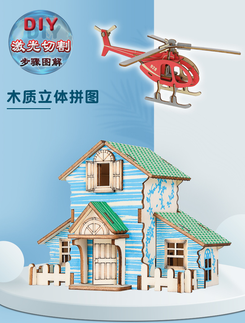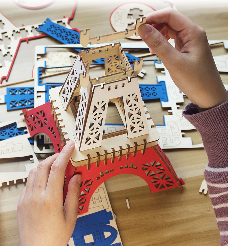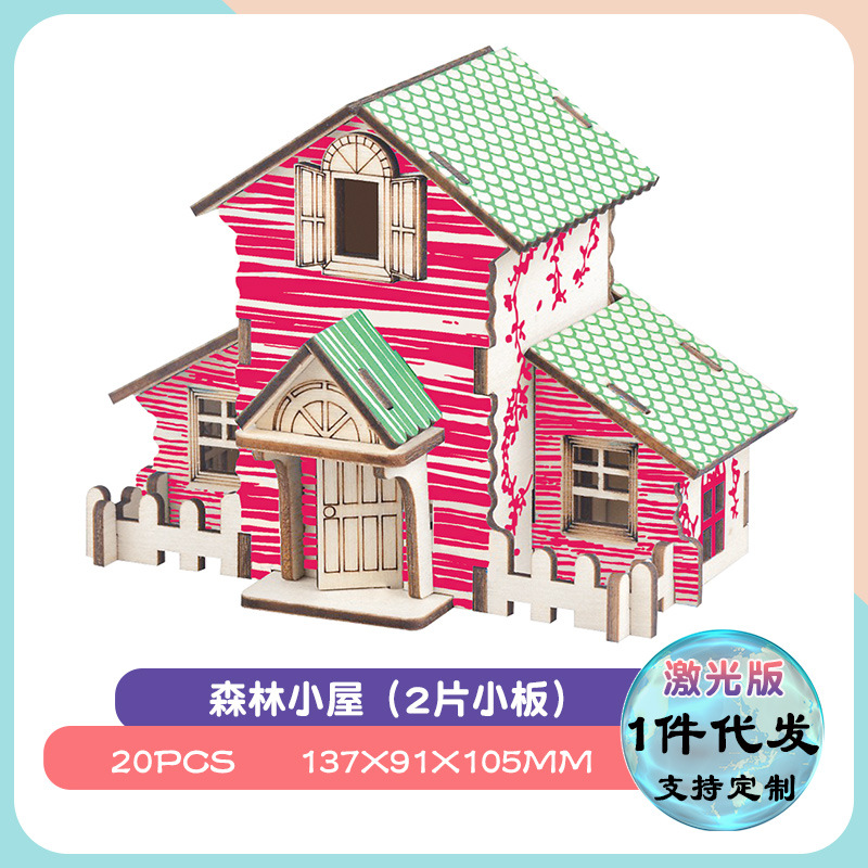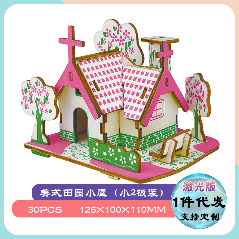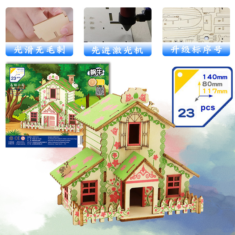 어린이 교육 완구 조립 된 나무 퍼즐 3D 입체 모델 소년과 소녀 수제 조립 스톨스토어 가기