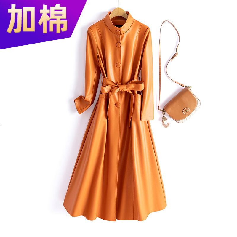2024 년 가을 새로운 가죽 여성용 긴 가죽 코트 수직 칼라 슬림 핏 슬리밍 여성용 한국 가죽 코트 6701스토어 가기