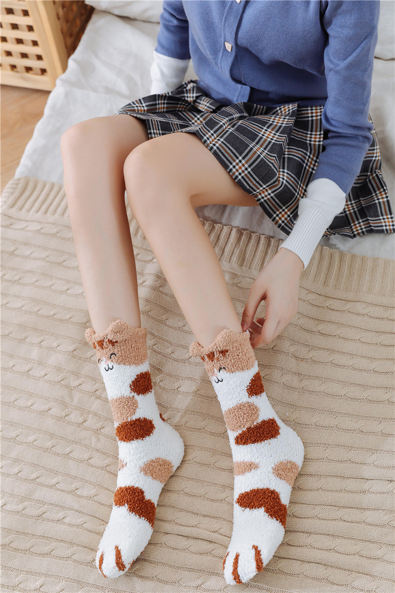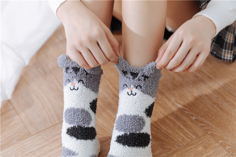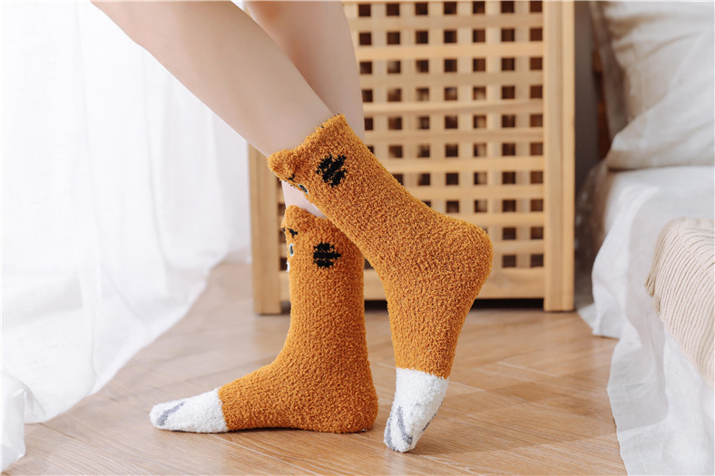 산호 벨벳 양말 여성용 중간 길이 양말 발가락 양말 가을 겨울 두꺼운 보온 바닥 양말 산후 양말 따뜻한 두꺼운 양말스토어 가기