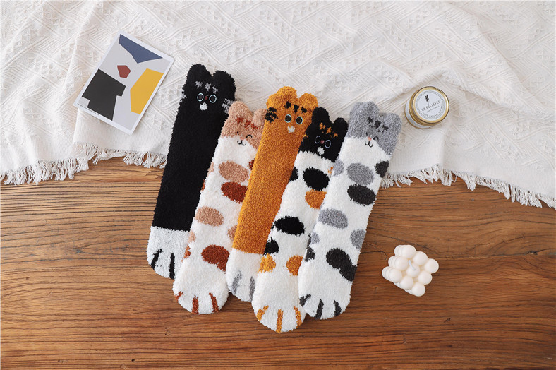 산호 벨벳 양말 여성용 중간 길이 양말 발가락 양말 가을 겨울 두꺼운 보온 바닥 양말 산후 양말 따뜻한 두꺼운 양말