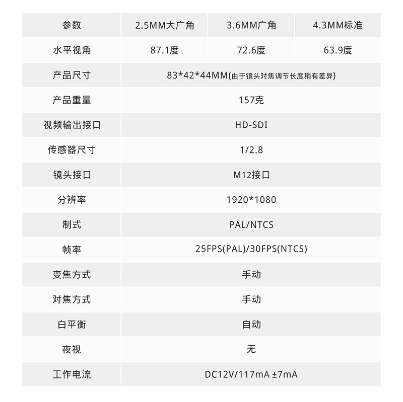 镜头可选:2.5MM / 3.6MM / 4.3MM