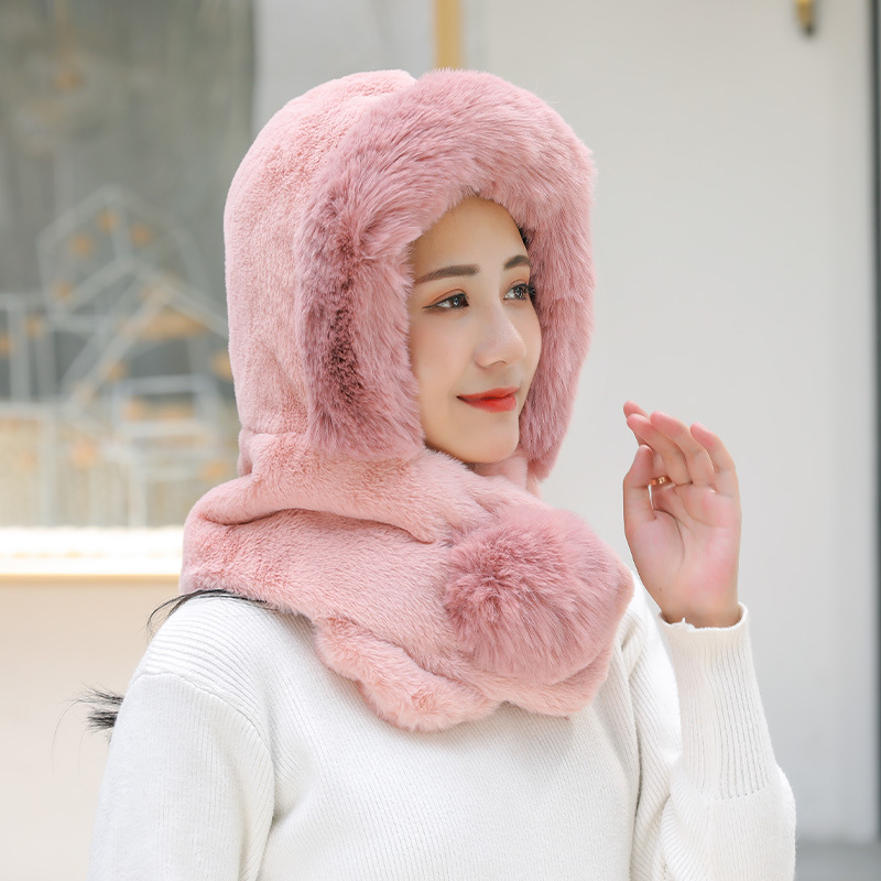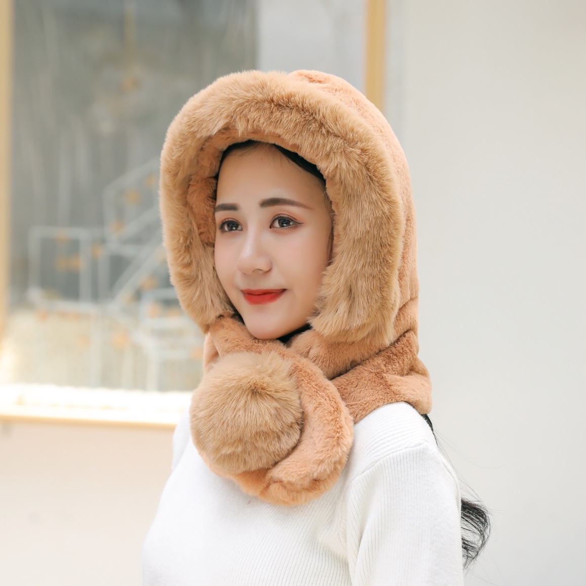 2020 한국 스타일 여성의 새로운 겨울 모자 학생 귀여운 밍크 머리 이중 목적 스카프 통합 모자 패션 기모 따뜻한 모자
