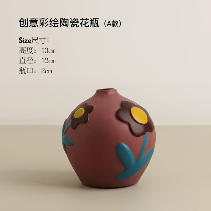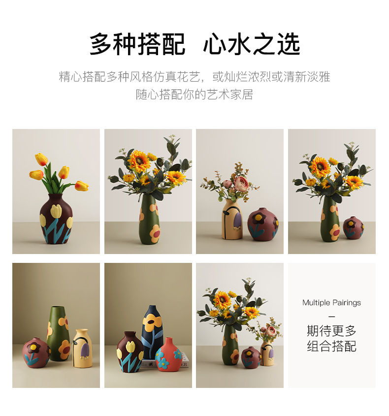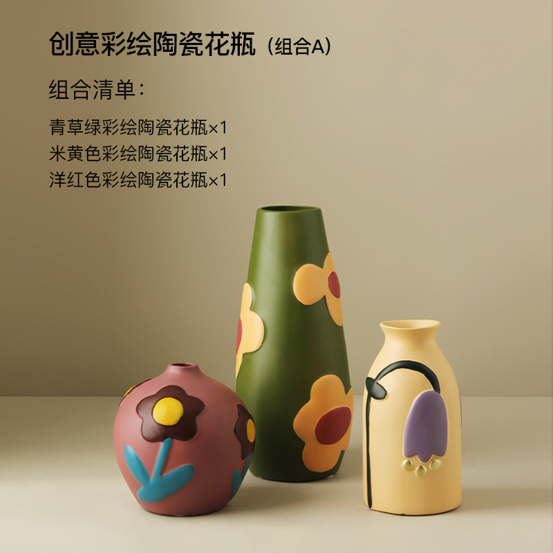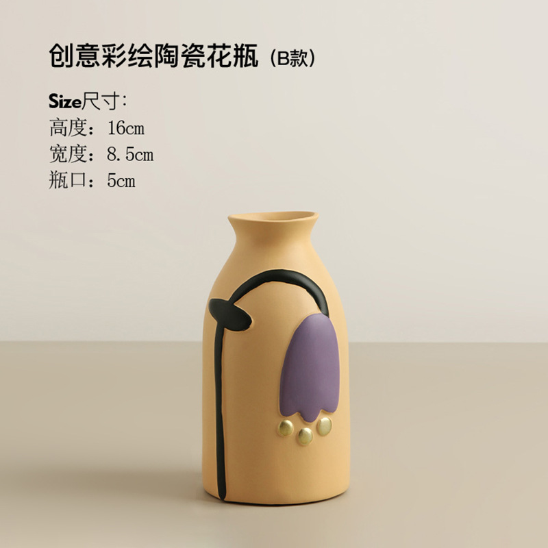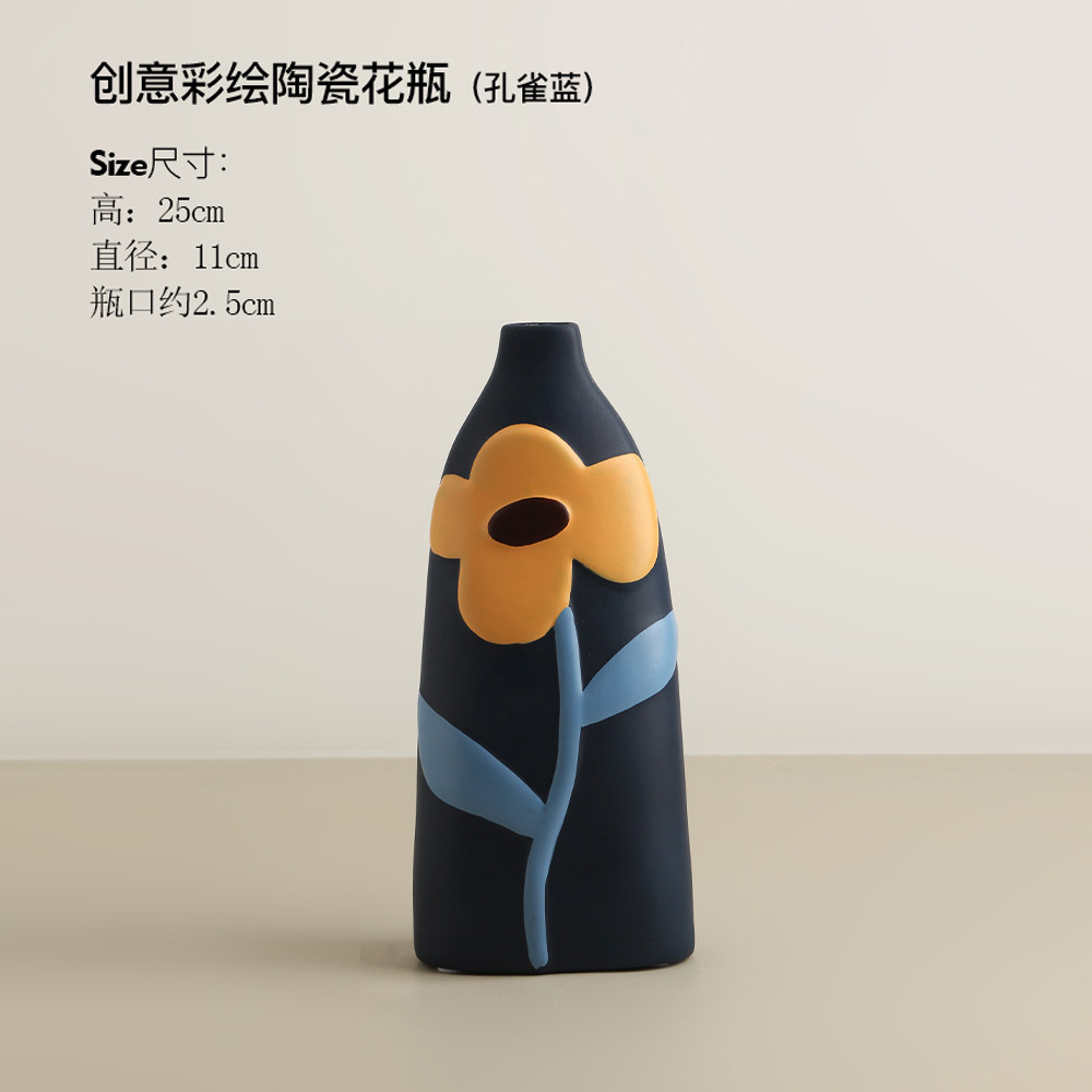베한 메이지 바람 창조적 인 페인트 세라믹 꽃병 장식품 거실 꽃 배열 입구 TV 캐비닛 장식 꽃병