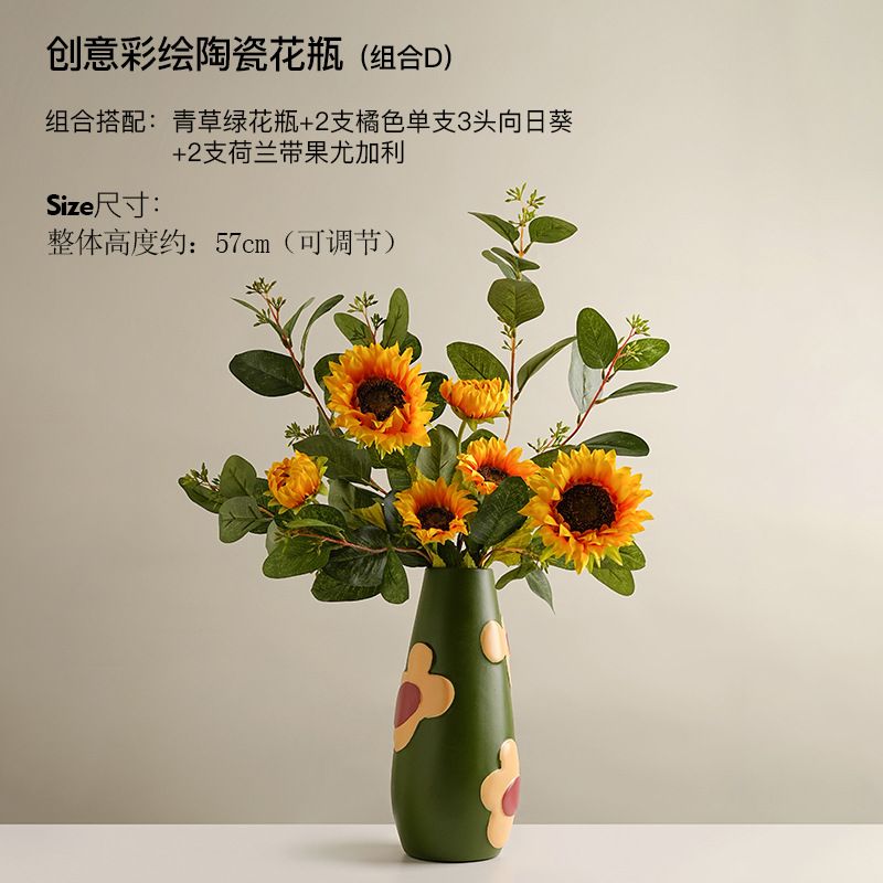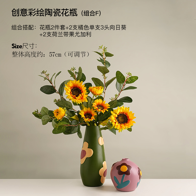 • 도색된 세라믹 꽃병 A+C 꽃 세트