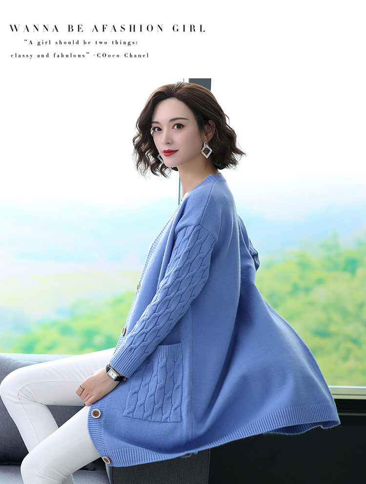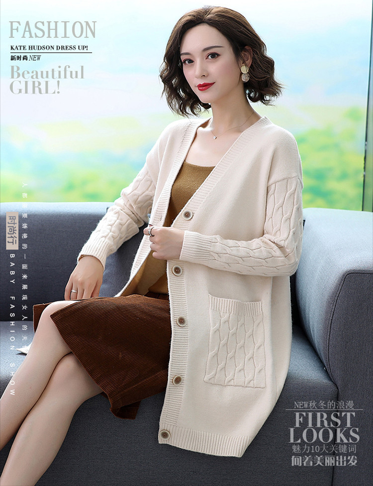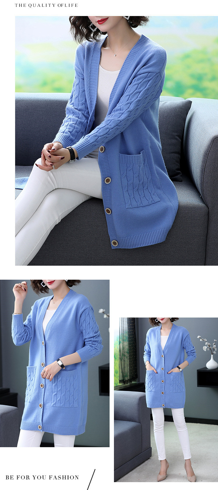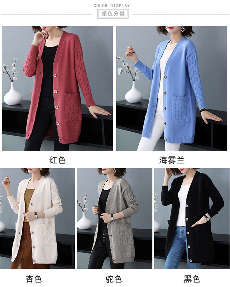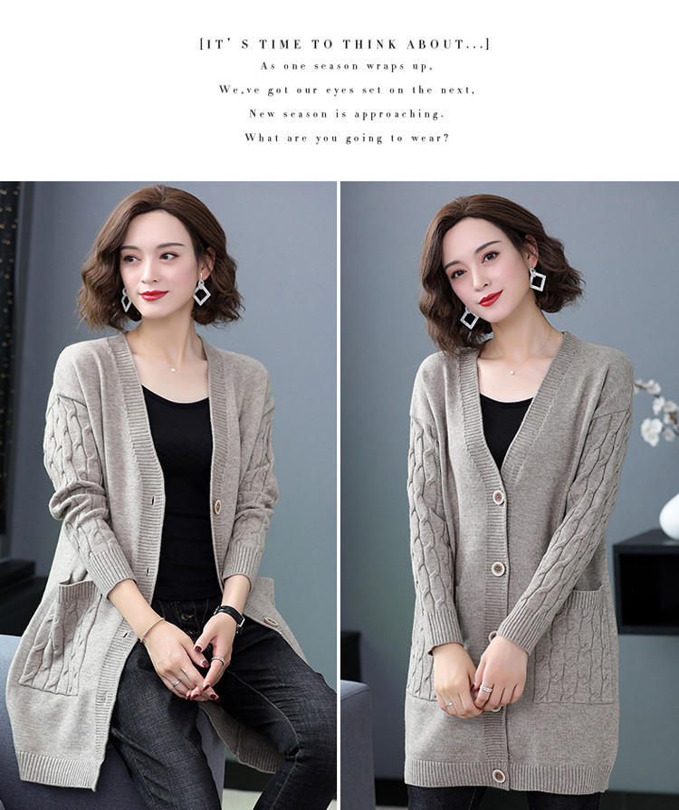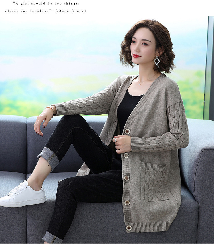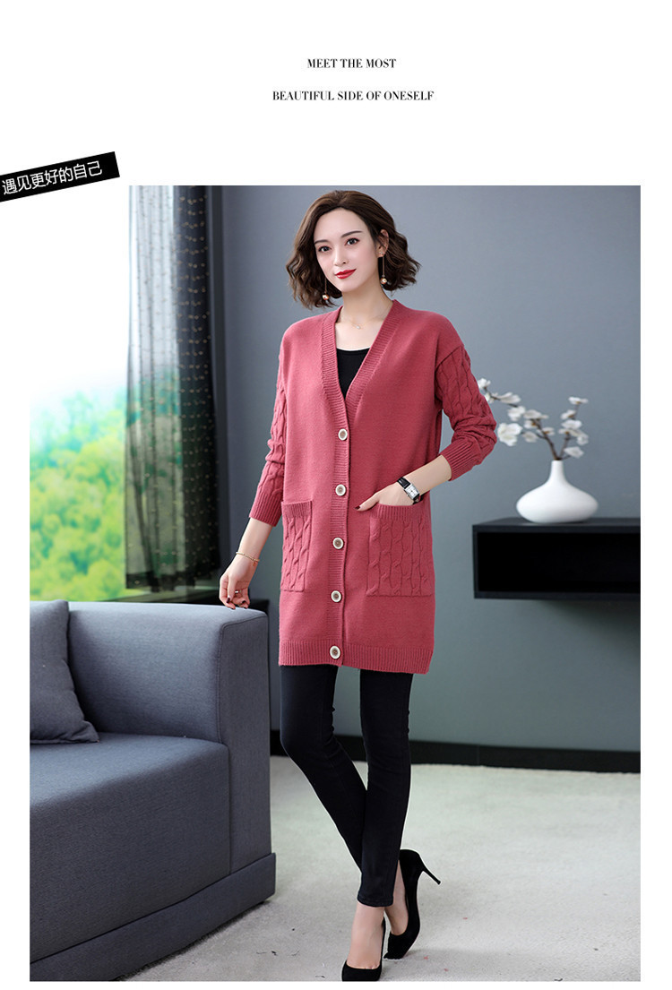 새로운 가을, 겨울 v 넥 중간 길이 니트 스웨터 재킷 카디건 여성 대형 싱글 브레스트 외부 탑스토어 가기