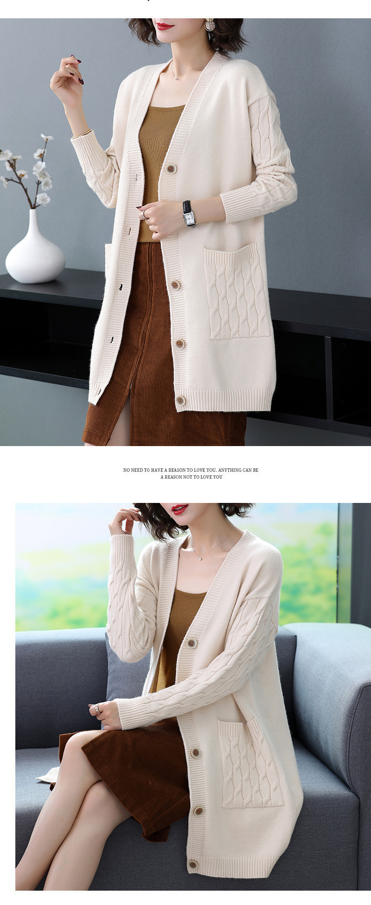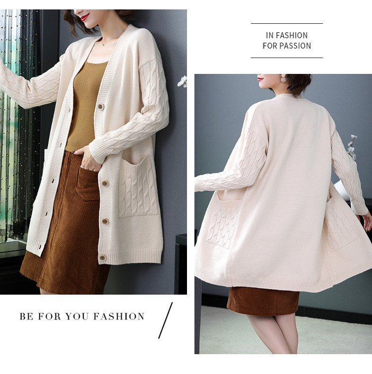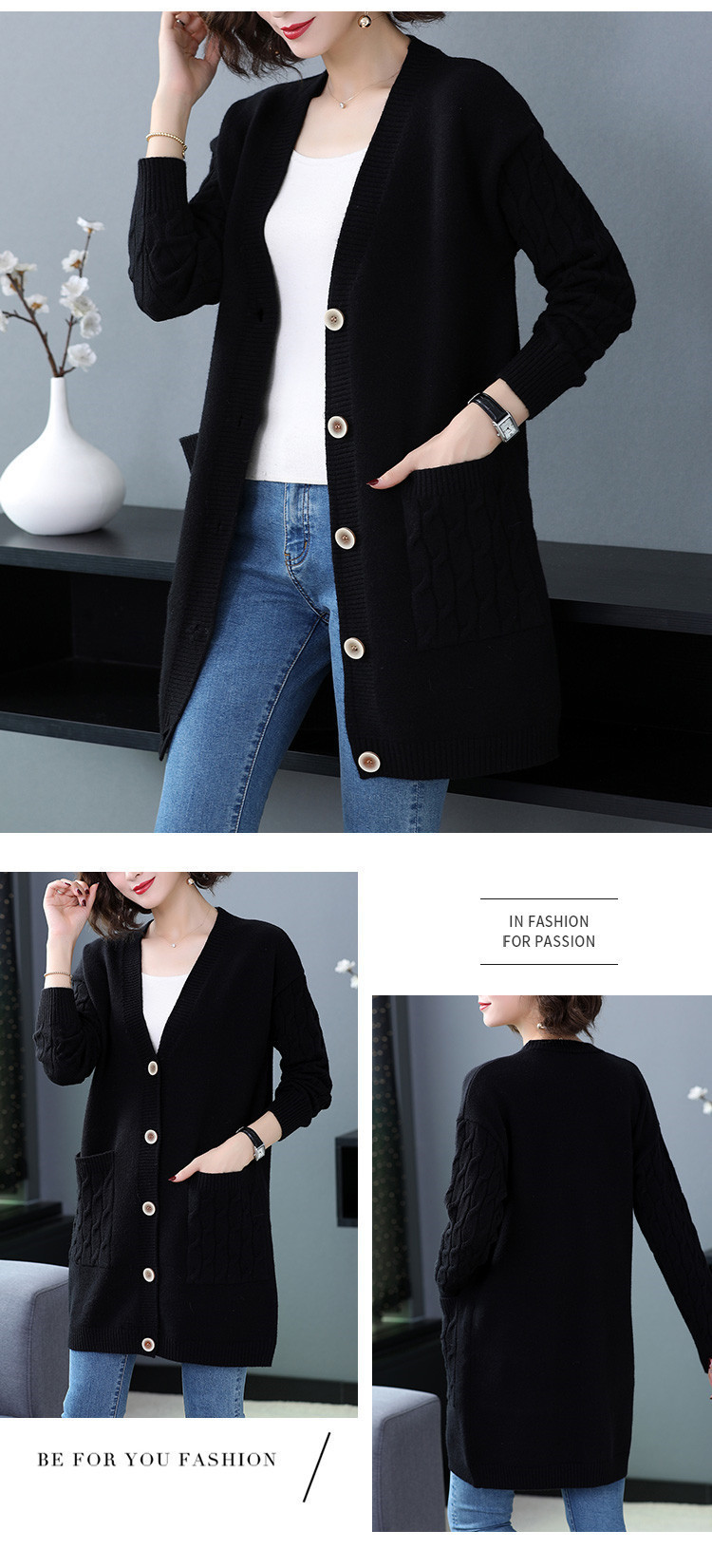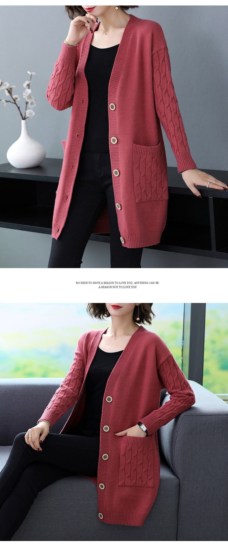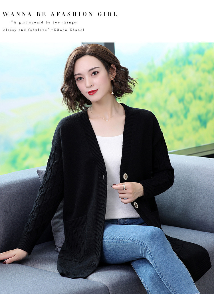 새로운 가을, 겨울 v 넥 중간 길이 니트 스웨터 재킷 카디건 여성 대형 싱글 브레스트 외부 탑스토어 가기
