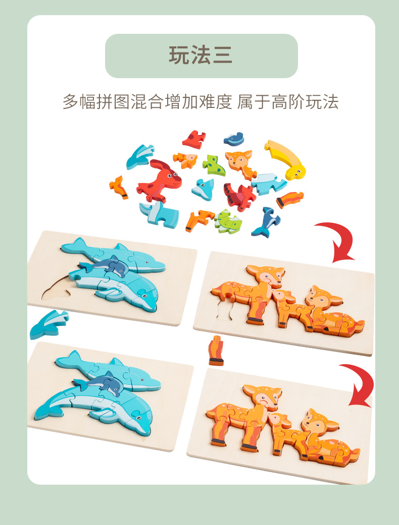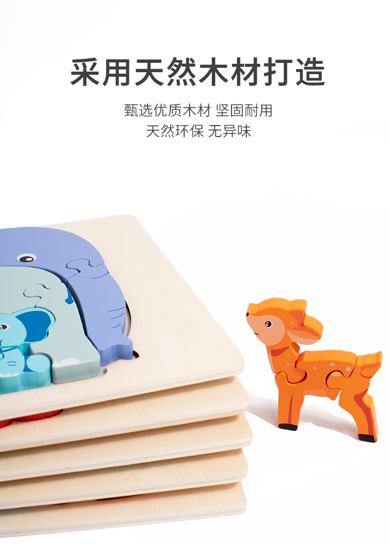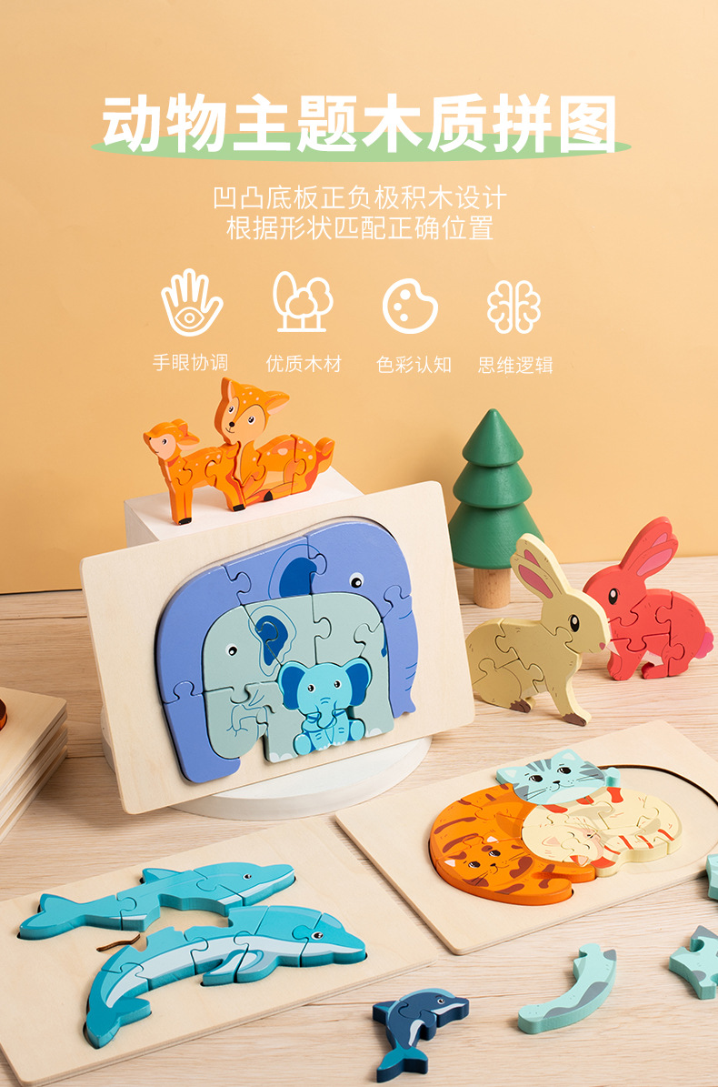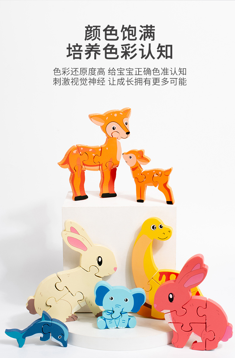 나무 3D 동물 스테레오 스냅 퍼즐 어린이 디지털 인지 동물 엄마와 아이 퍼즐 계몽주의 퍼즐 장난감스토어 가기