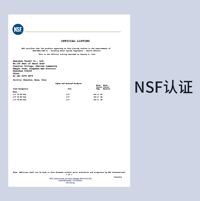 • 2점 100m (물배치 + NSF 이중인증)
