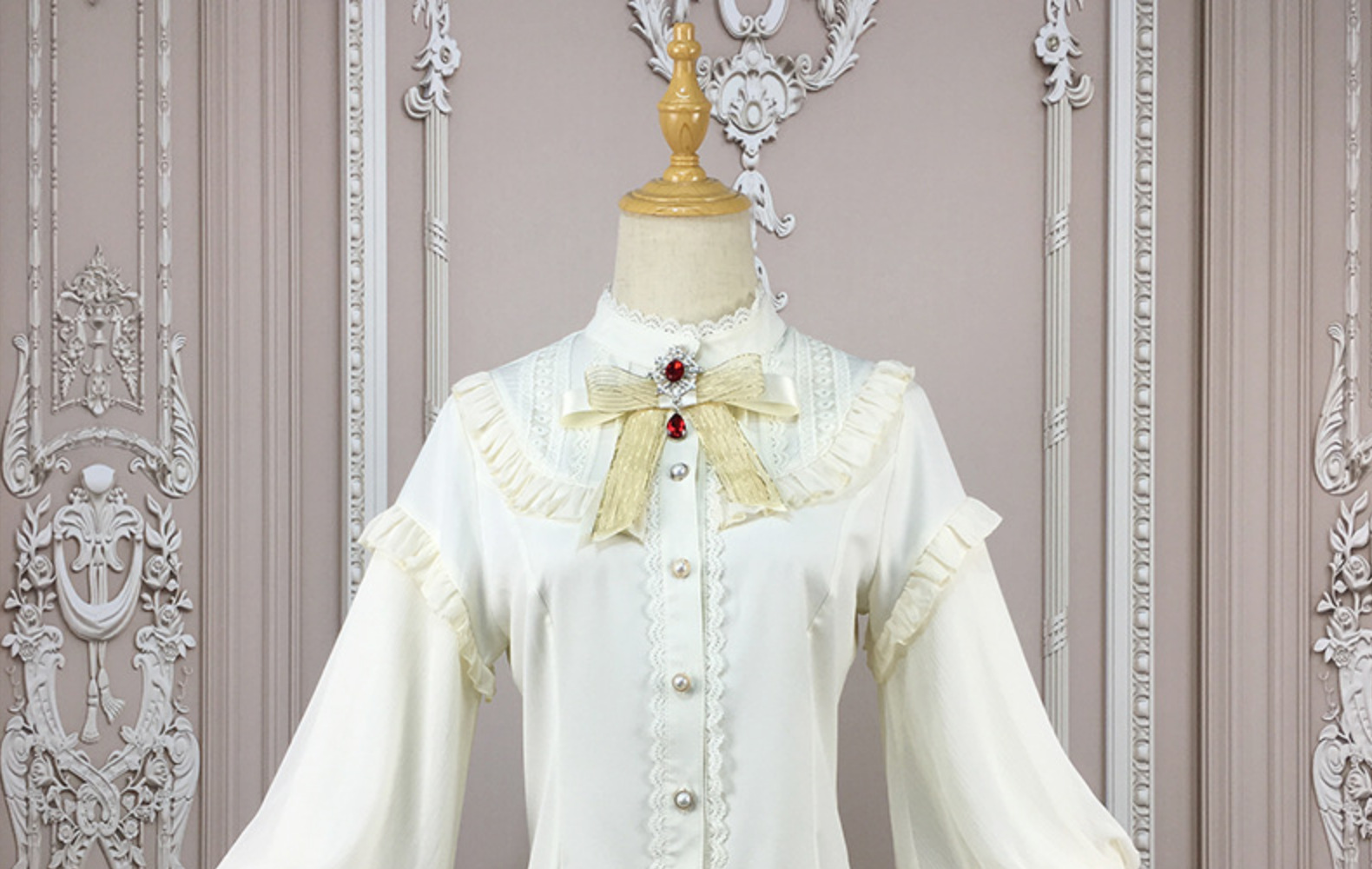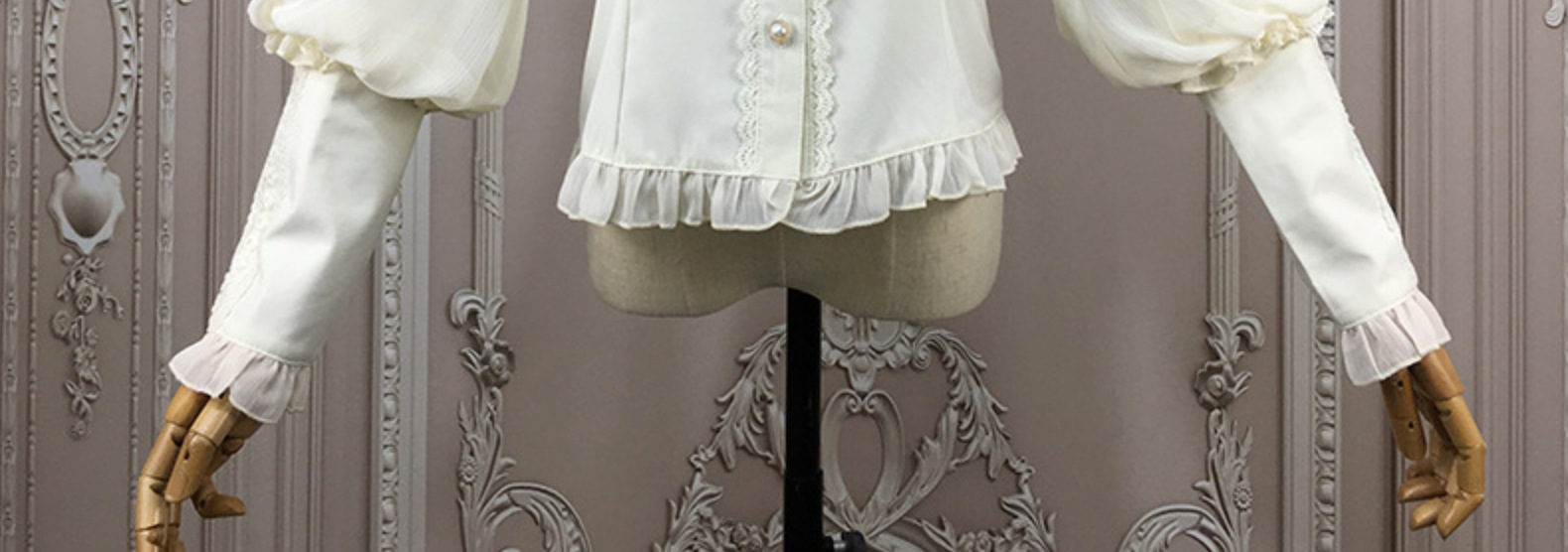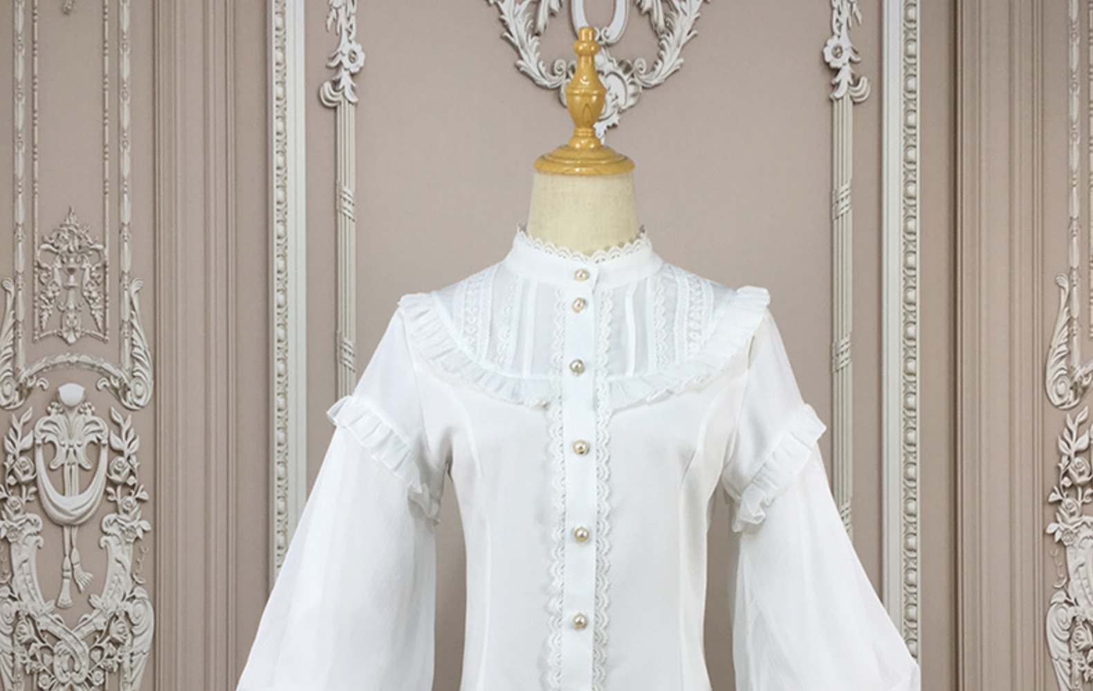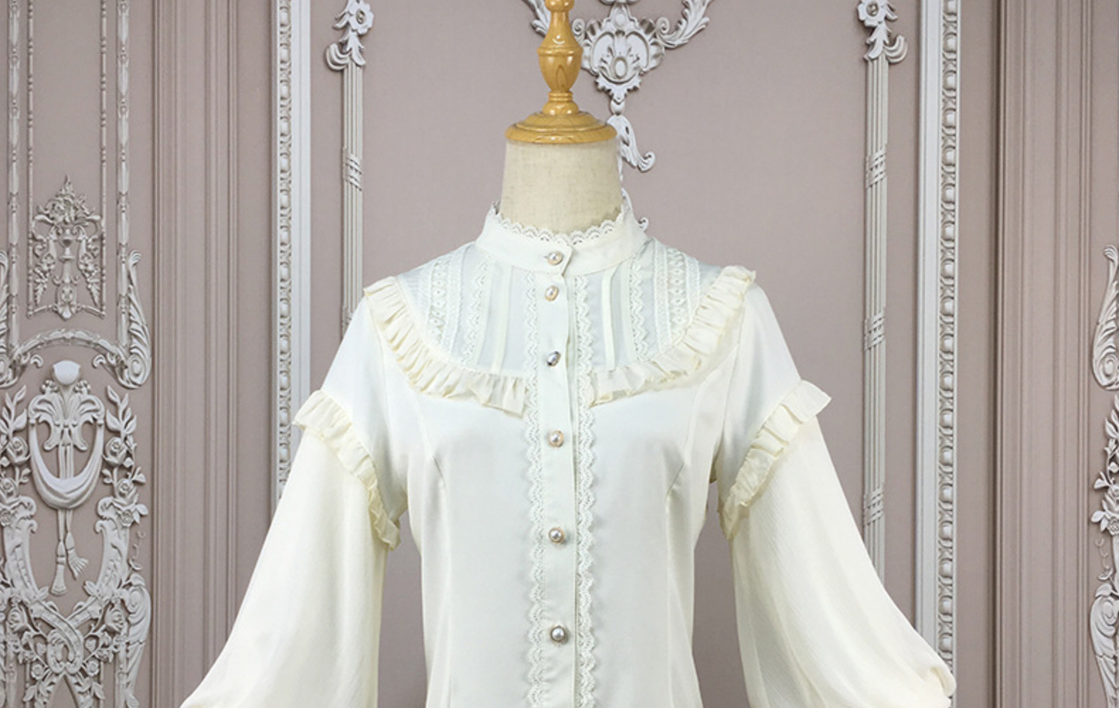 봄과 가을 로리타 레트로 양고기 다리 슬리브 셔츠 세로 칼라 긴 소매 쉬폰 내부베이스 슬림 탑 셔츠스토어 가기
