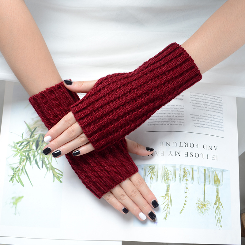 가을 겨울용 사이클링 따뜻한 니트 장갑 한국 스타일 단색 신축성 있는 얇은 울 꽈배기 짧은 장갑 단색