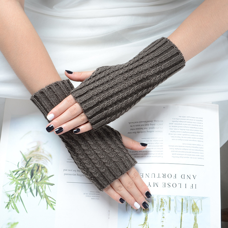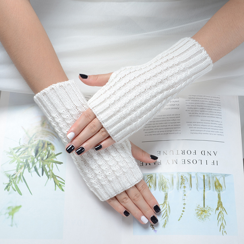 가을 겨울용 사이클링 따뜻한 니트 장갑 한국 스타일 단색 신축성 있는 얇은 울 꽈배기 짧은 장갑 단색스토어 가기