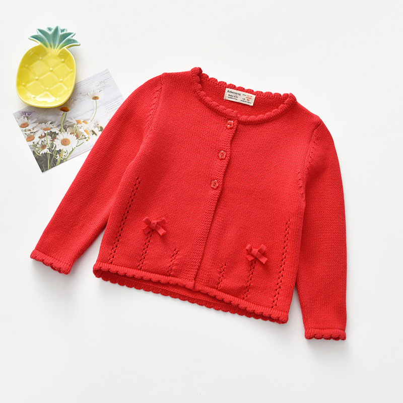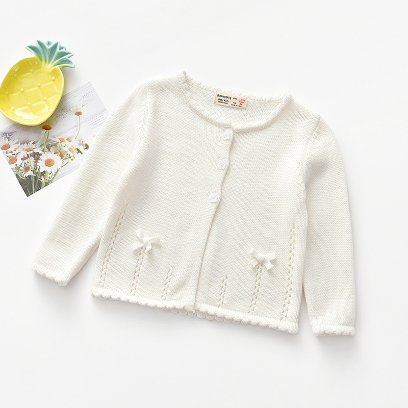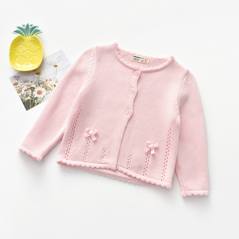 봄과 가을 새로운 두꺼운 니트 코튼 소녀 스웨터 아기 스웨터 보우 카디건 드롭 배송