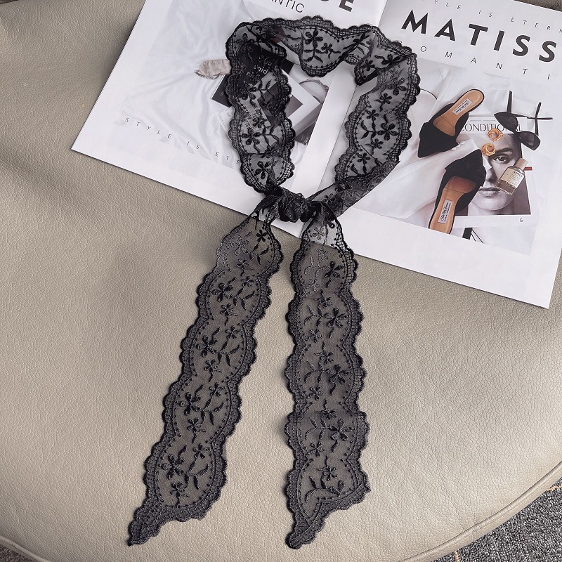 아주 요정 부드러운 기질 레이스 작은 실크 스카프 한국 모든 일치 작은 스카프 얇은 복고풍 헤어 밴드 벨트
