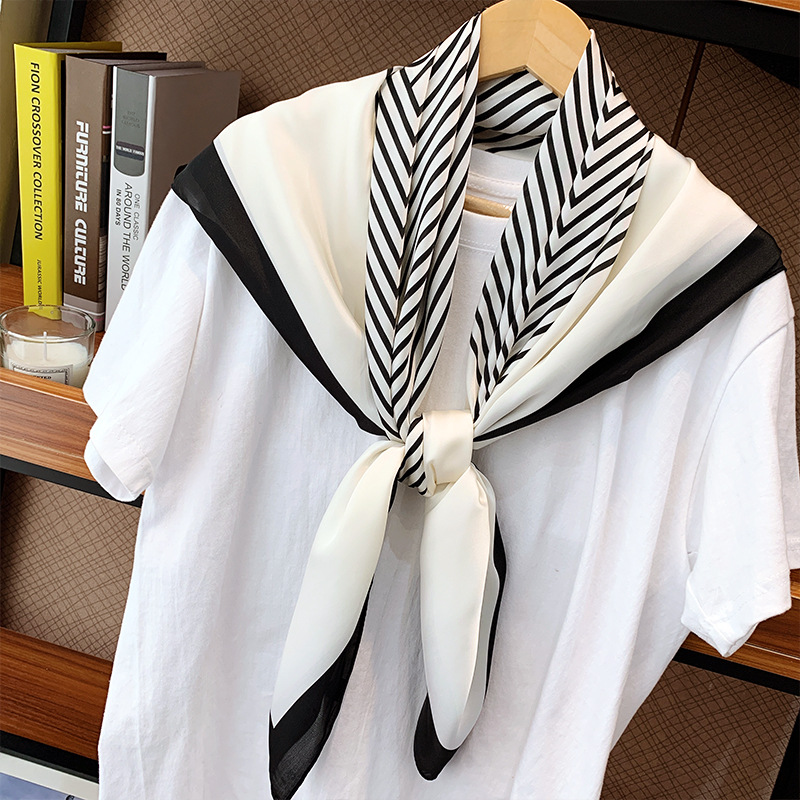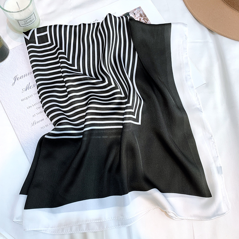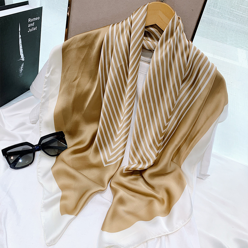 항저우 실크 봄과 여름 새로운 모든 경기 우아한 스트라이프 90 대형 스퀘어 스카프 실크 스카프 여성 스튜어디스 장식 스카프 타이 백