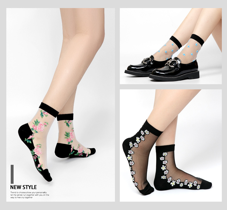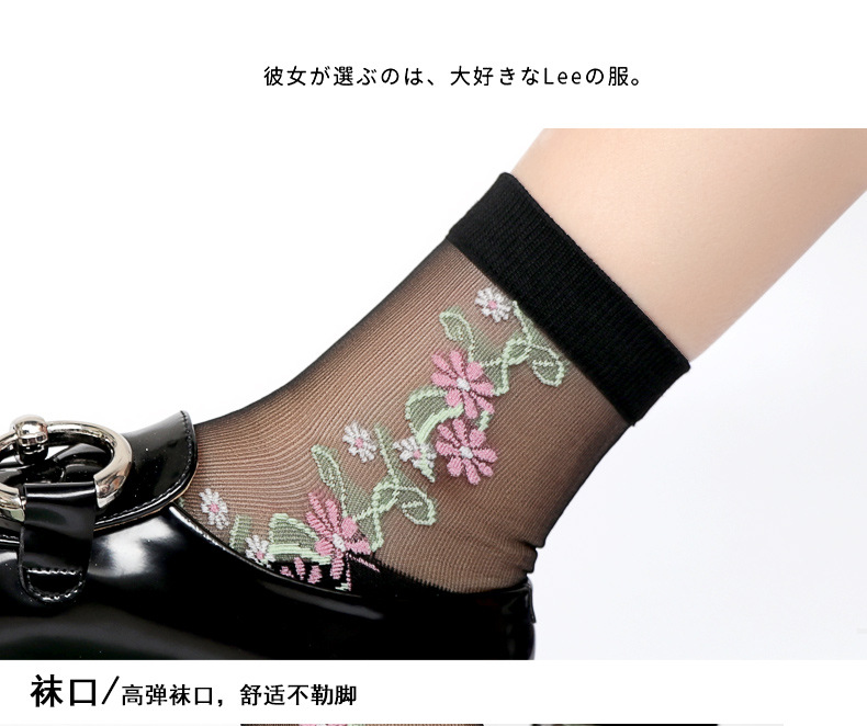 여름 아이스 실크 양말 여성의 일본 물방울 줄무늬 나비 유리 실크 스타킹 중간 배럴 크리스탈 실크 탄산 피부 양말스토어 가기