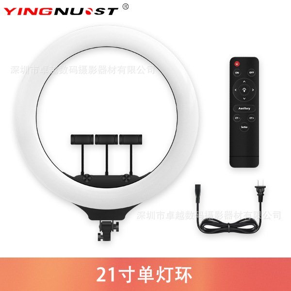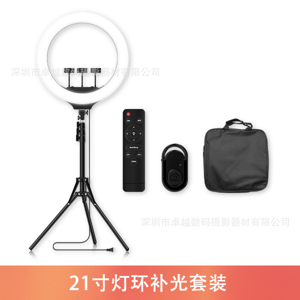套装包含:大光圈+1.85米反向折叠支架+3个手机软管夹+电源线+灯光远程遥控器+手机蓝牙遥控器+灯环收纳包+一体式中性包装