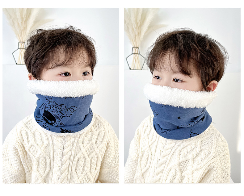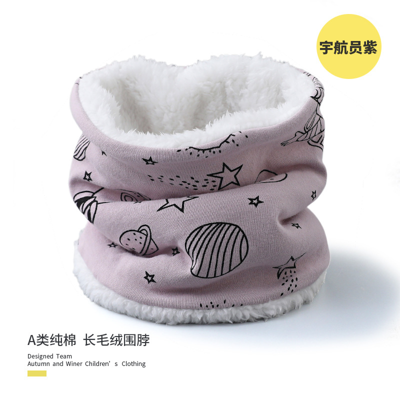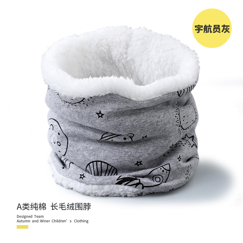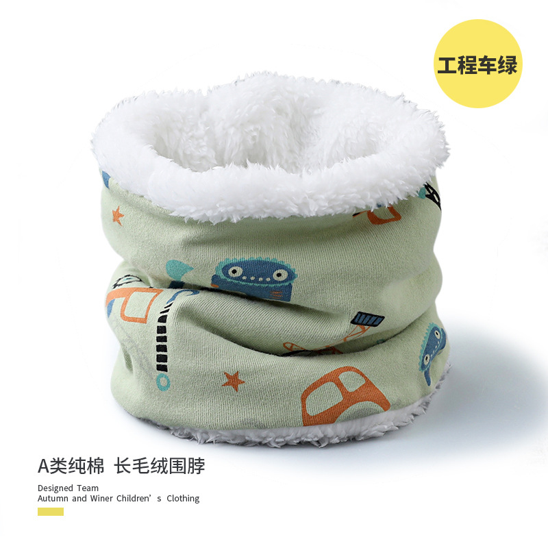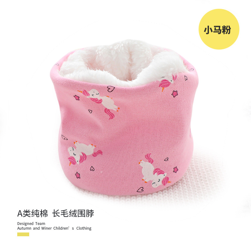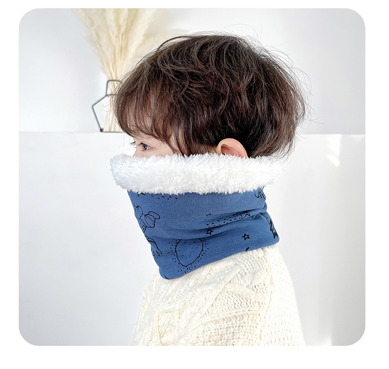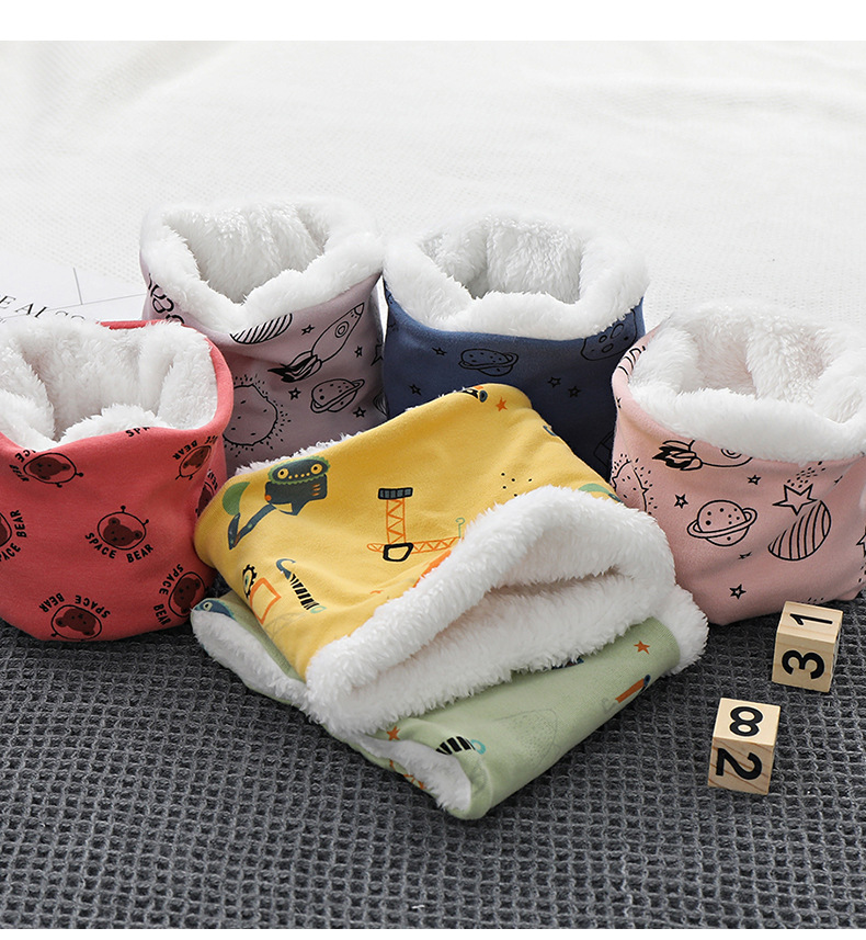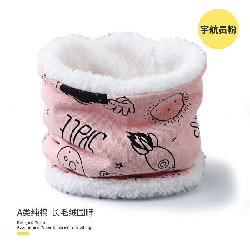 25 겨울 신상 한국판 아동용 벨벳 스카프 아기 보온 순면 만화 프린트 롱퍼 방풍 넥워머