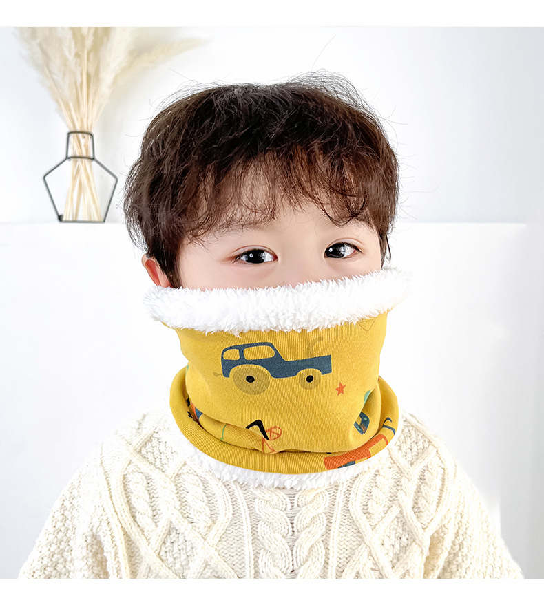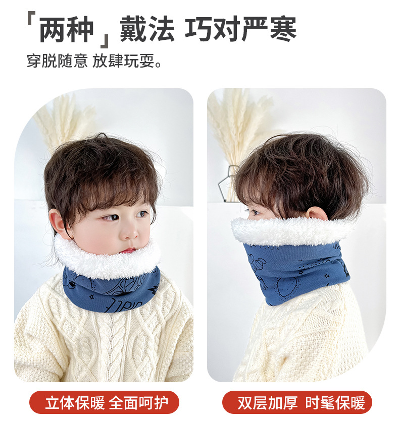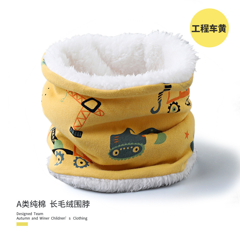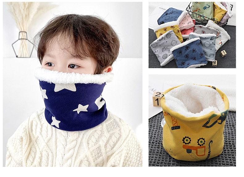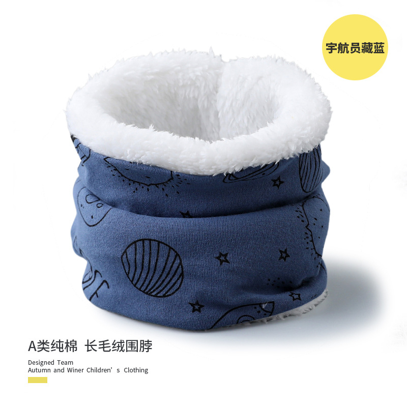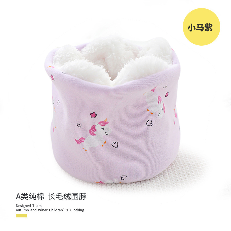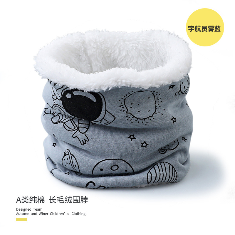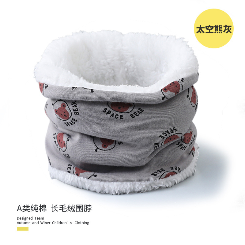 25 겨울 신상 한국판 아동용 벨벳 스카프 아기 보온 순면 만화 프린트 롱퍼 방풍 넥워머