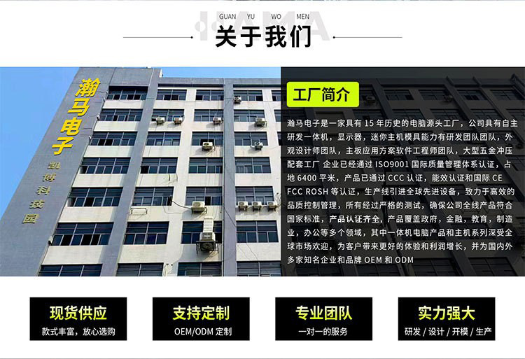 瀚马电子一体机电脑、显示器、迷你台式主机制造商,为全球消费者提供了液晶电脑一体机,多媒体触控一体机电脑,等视讯全生态产品线,旗下有BAIWO,HAMA瀚马两个自主品牌,工厂秉承:精品质,行天下,的理念对产品的品质精益求精.瀚马品牌更致力于深度挖掘消费者的应用需求,以用户最严苛的视讯需求为研发己任,提供专业的视讯服务解决方案,产品销售遍布国内和全球。 面向未来,瀚马(深圳)电子有限公司正以崭新的形象,以创新为动力,以市场为导向,以专注、专业和专精的态度来经营视讯设备产品,从而实现旗下品牌的永恒发展基业。