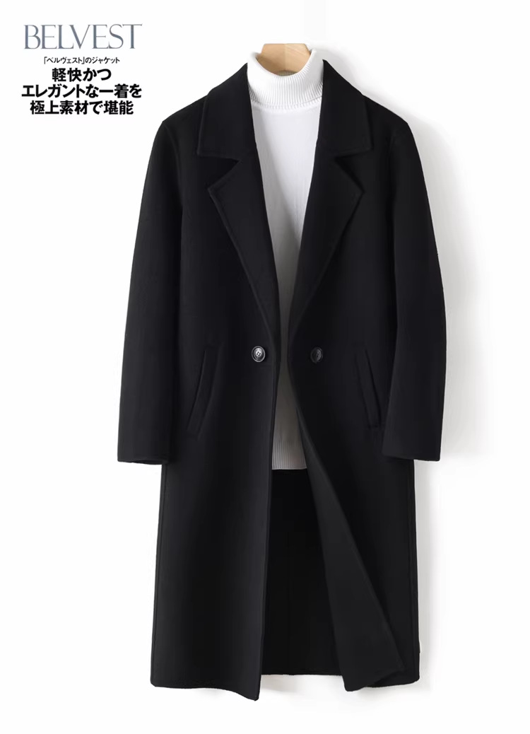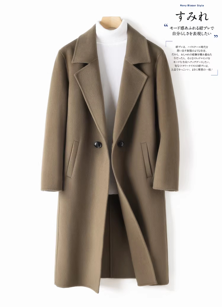 가을 겨울 신상 양면 캐시미어 코트 남성용 중간 길이 무릎 위 길이 캐주얼 순모 울 코트 윈드브레이커스토어 가기