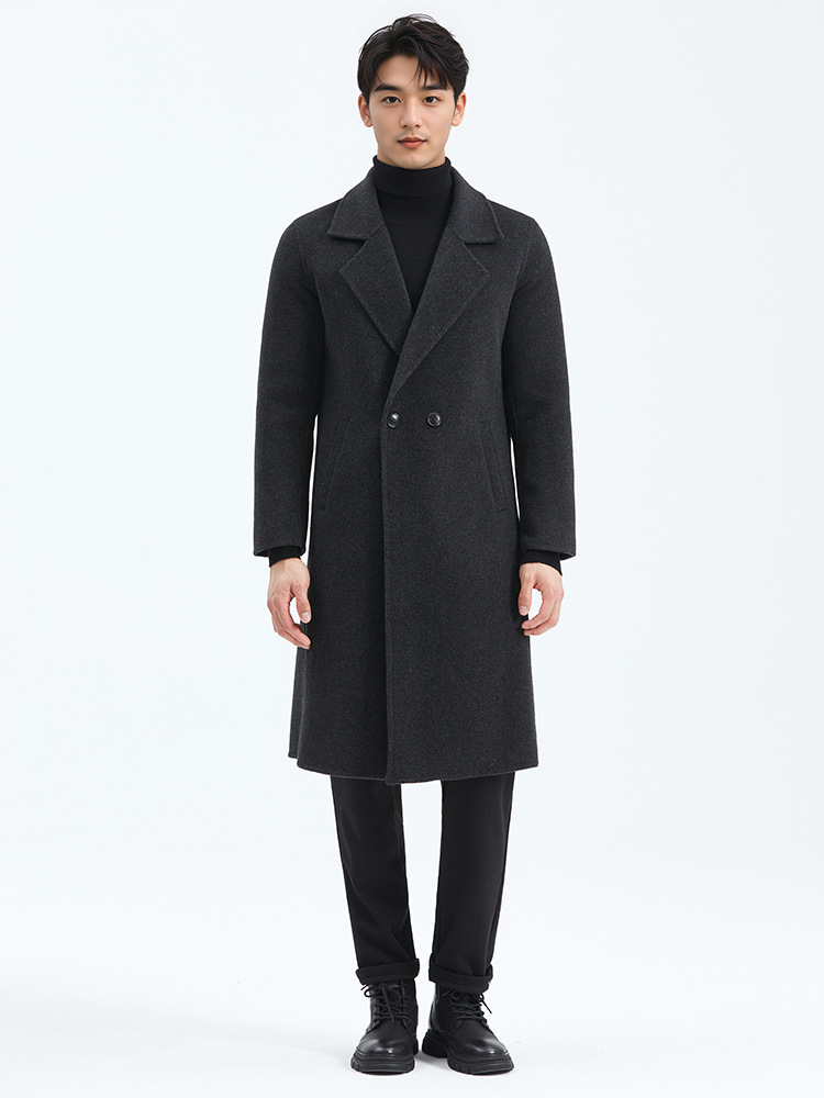 퓨어 울 양면 모직 코트 남성용 중간 길이 무릎 위 무릎 양면 캐시미어 코트 세트 칼라 모직 코트