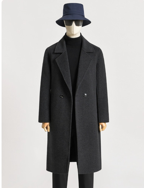 가을 겨울 신상 양면 캐시미어 코트 남성용 중간 길이 무릎 위 길이 캐주얼 순모 울 코트 윈드브레이커