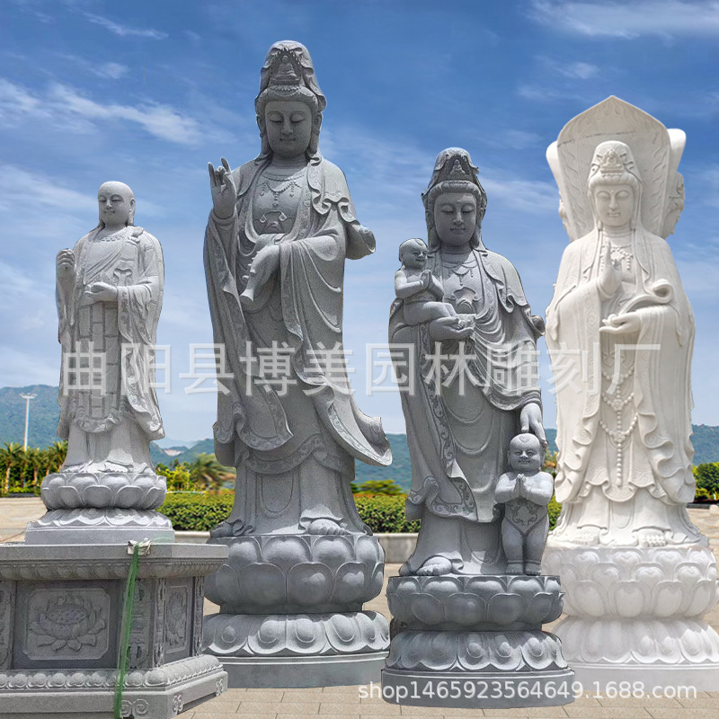 공장 공급 흰색 대리석 돌 조각 관음 오디오 및 비디오 떨어지는 남해 3 면 관음보살불상스토어 가기