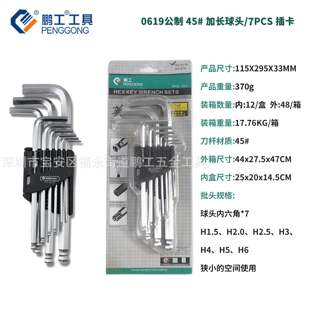 • 0619 45 # 모래 손톱 미터법 볼 헤드 7PC 카드 */*/