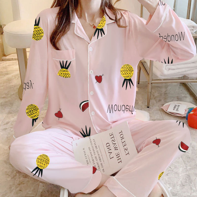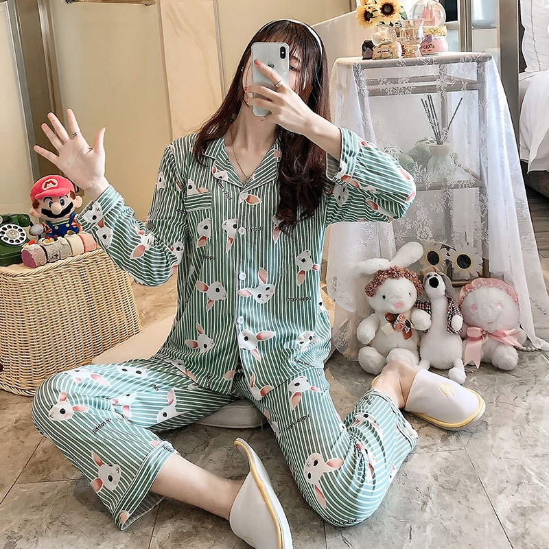 국경 간 도매 만화 소녀 잠옷 여성용 가을 긴팔 가디건 신상 겨울 홈웨어 봄 여름 여성용 세트