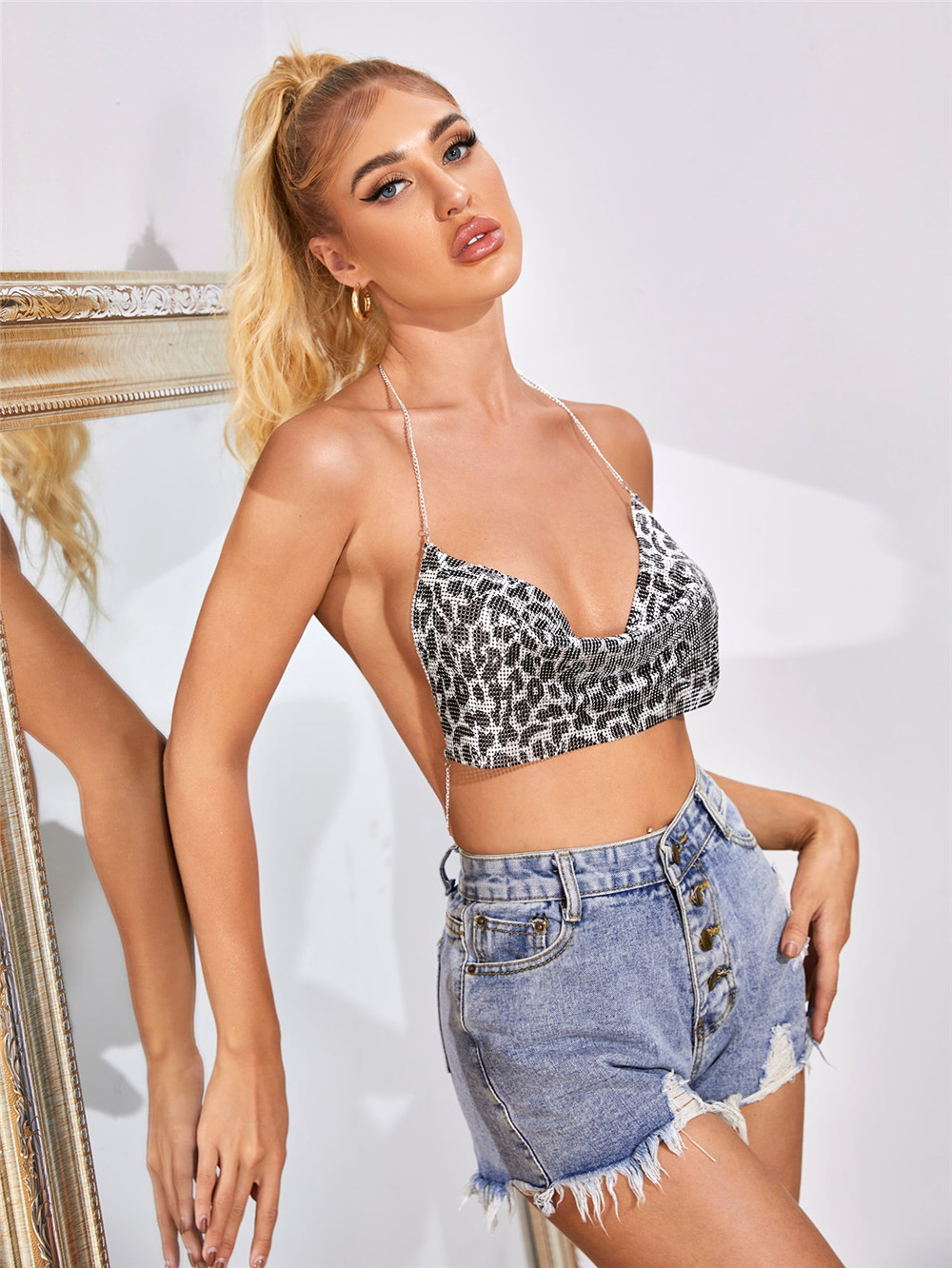 공장 직판 2026 신상 나이트클럽 알리익스프레스 인기 메탈 체인 스팽글 끈 없는 탑 842