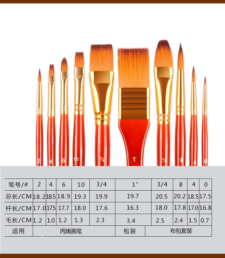 • 아크릴 브러쉬 10 개 + 빨간색 천 가방