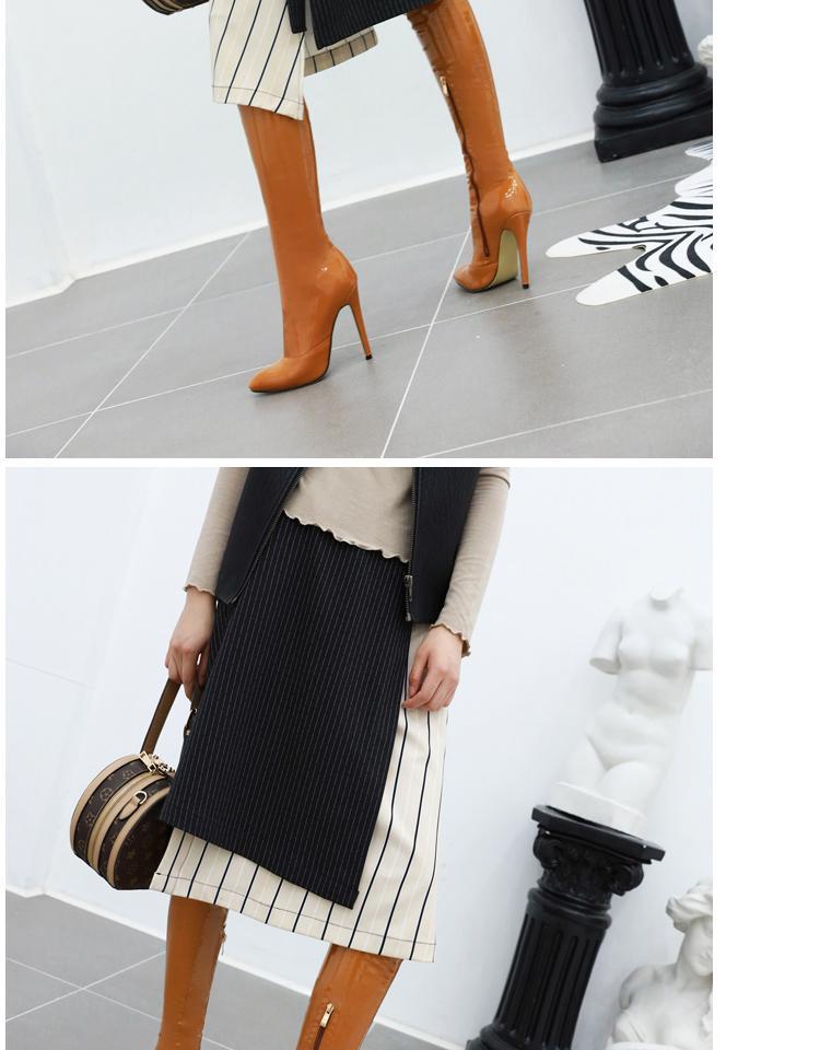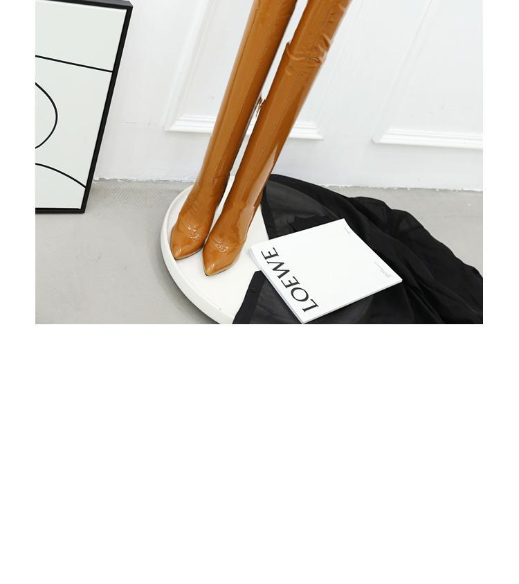 스틸 튜브 댄스 부츠 뾰족한 얇은 굽 하이힐 나이트 부츠 유럽과 미국 스타일 섹시한 검은 무릎 위 부츠 밝은 가죽 여성용 부츠스토어 가기