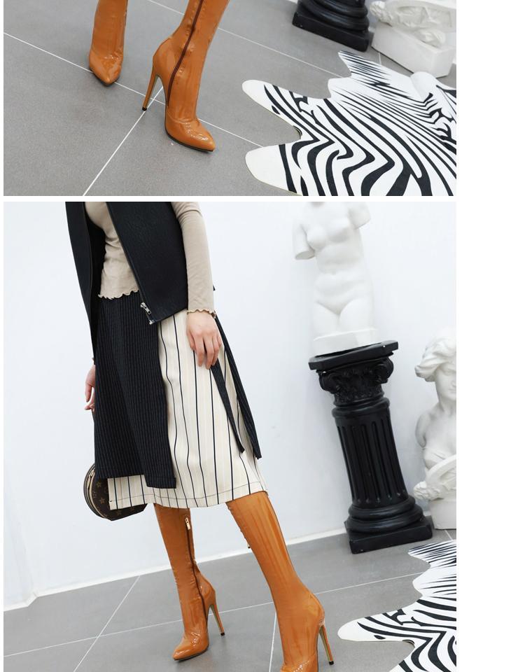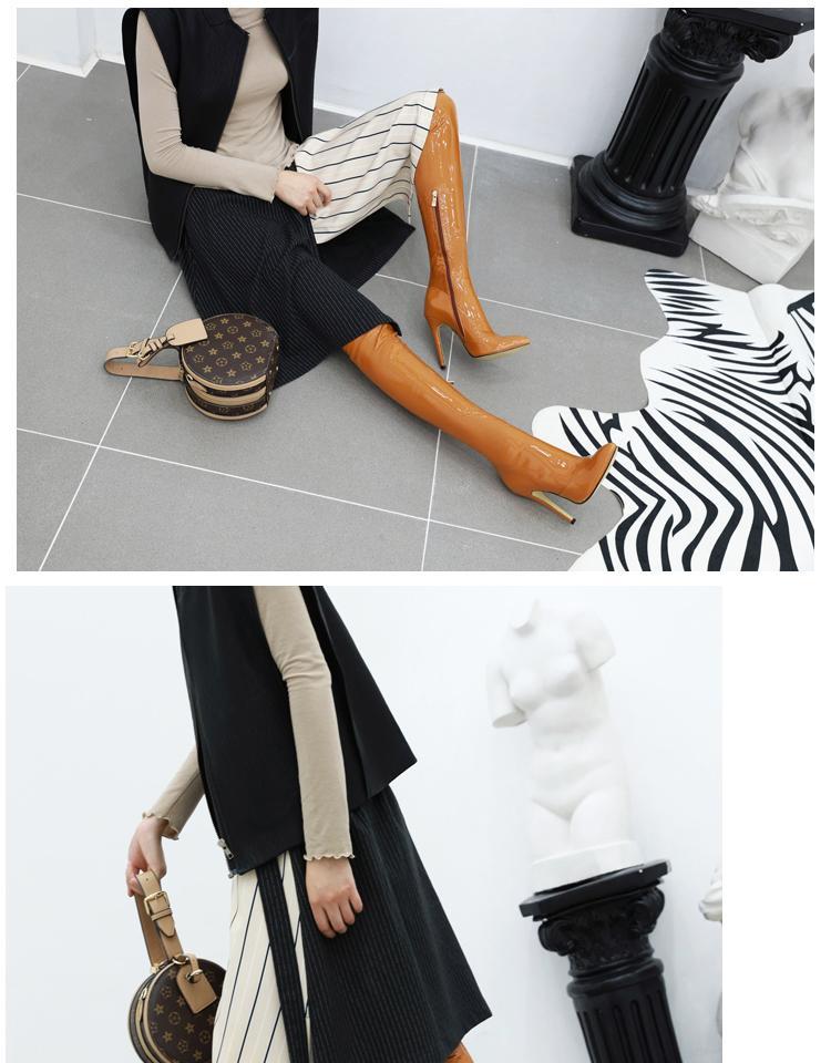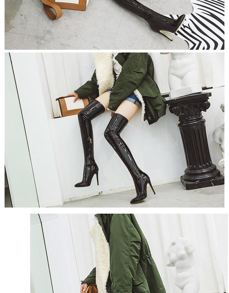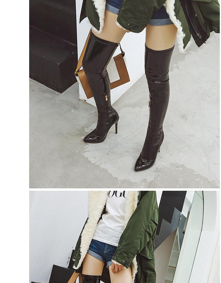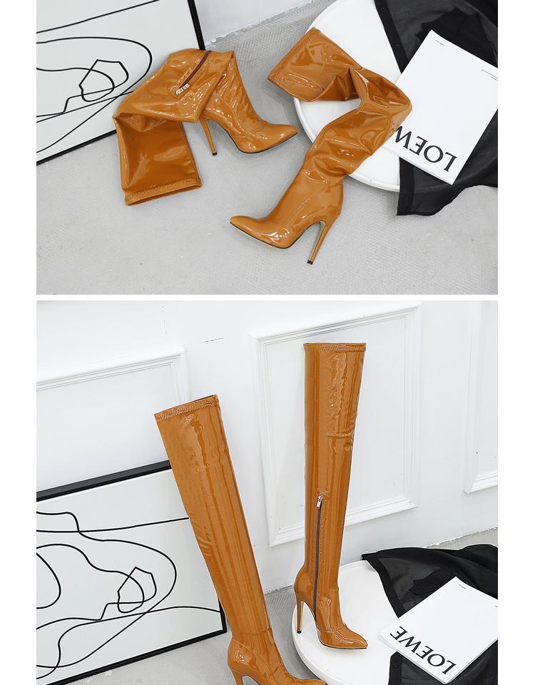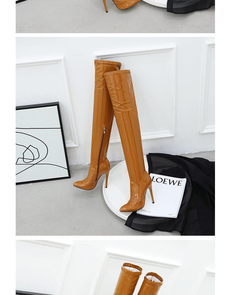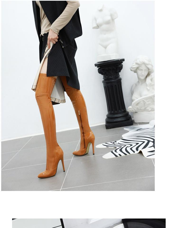 스틸 튜브 댄스 부츠 뾰족한 얇은 굽 하이힐 나이트 부츠 유럽과 미국 스타일 섹시한 검은 무릎 위 부츠 밝은 가죽 여성용 부츠