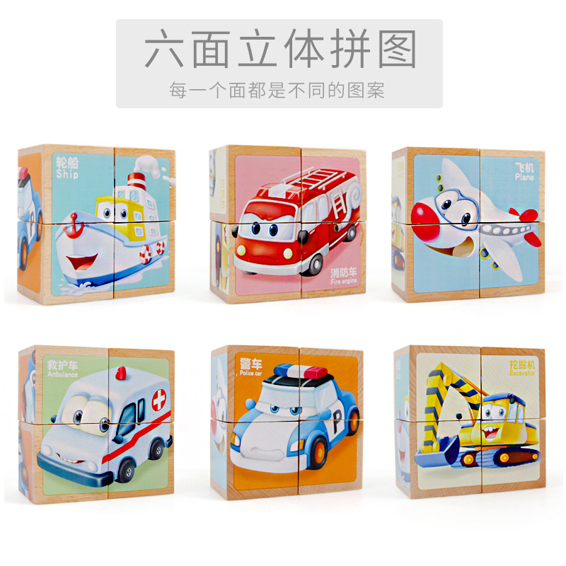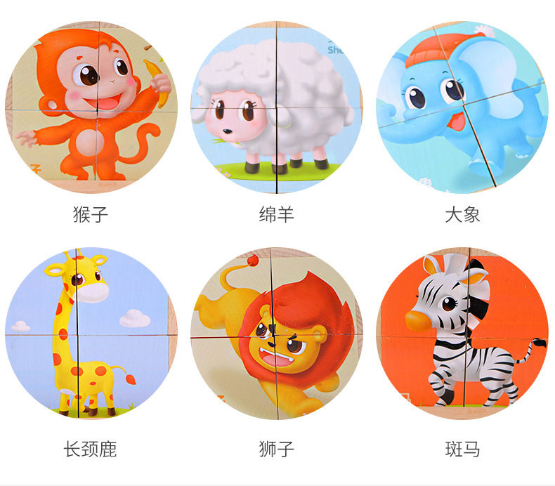 Siyu 어린이 6 면 드로잉 빌딩 블록 만화 동물 퍼즐 3d 스테레오 1-3 세 아기 장난감 너도밤 나무스토어 가기