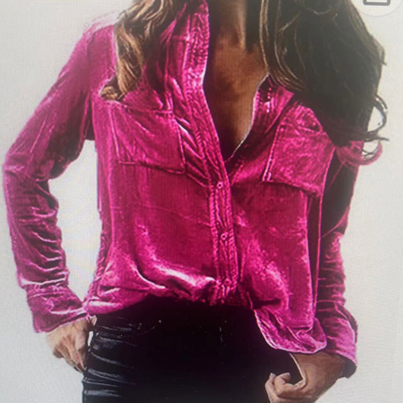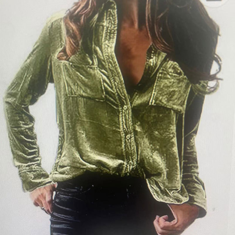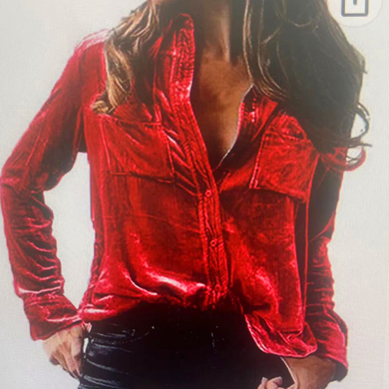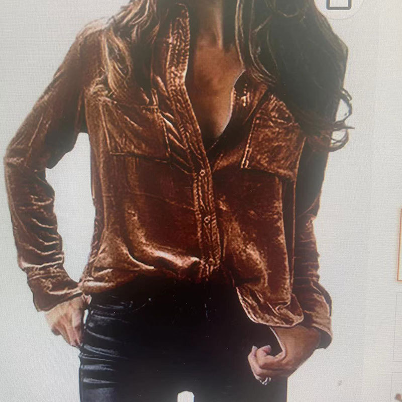 대외 무역 유럽과 미국 새로운 여성의 봄과 가을 벨벳 셔츠 긴 소매 옷깃 여성용 골드 벨벳 탑 셔츠 폭발스토어 가기