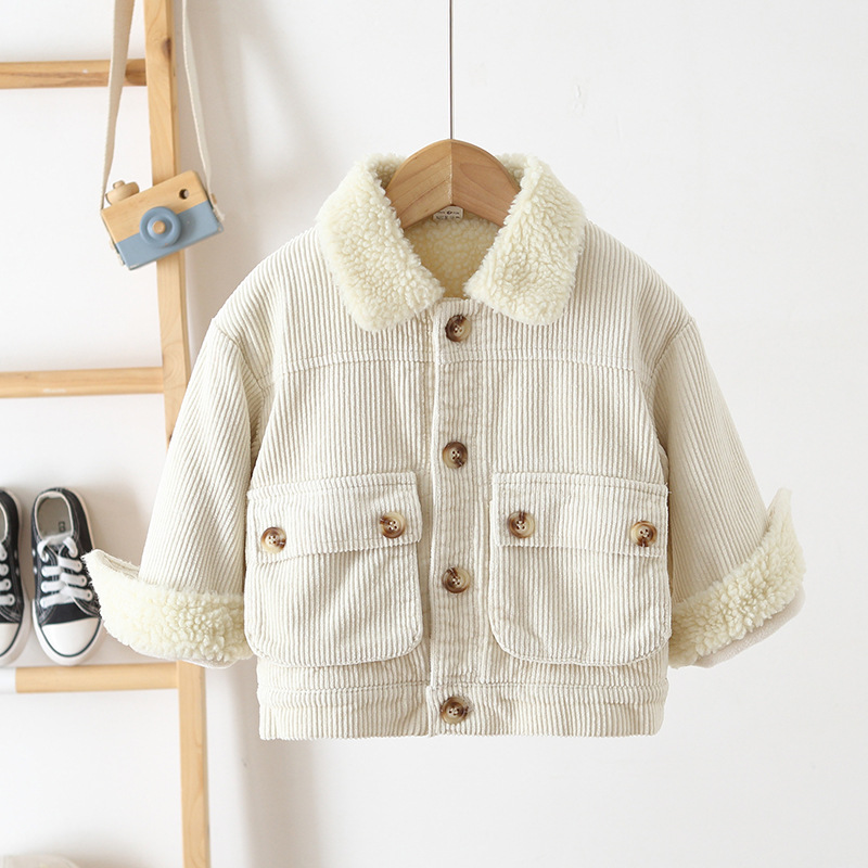 2025 아동복 겨울용 아동 코트 한국 스타일 남녀 아동용 코듀로이 코트 플러스 벨벳 패셔너블하고 따뜻한 아동 상의