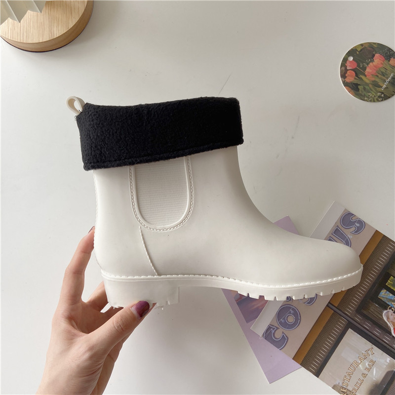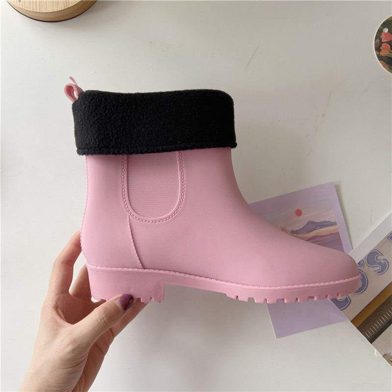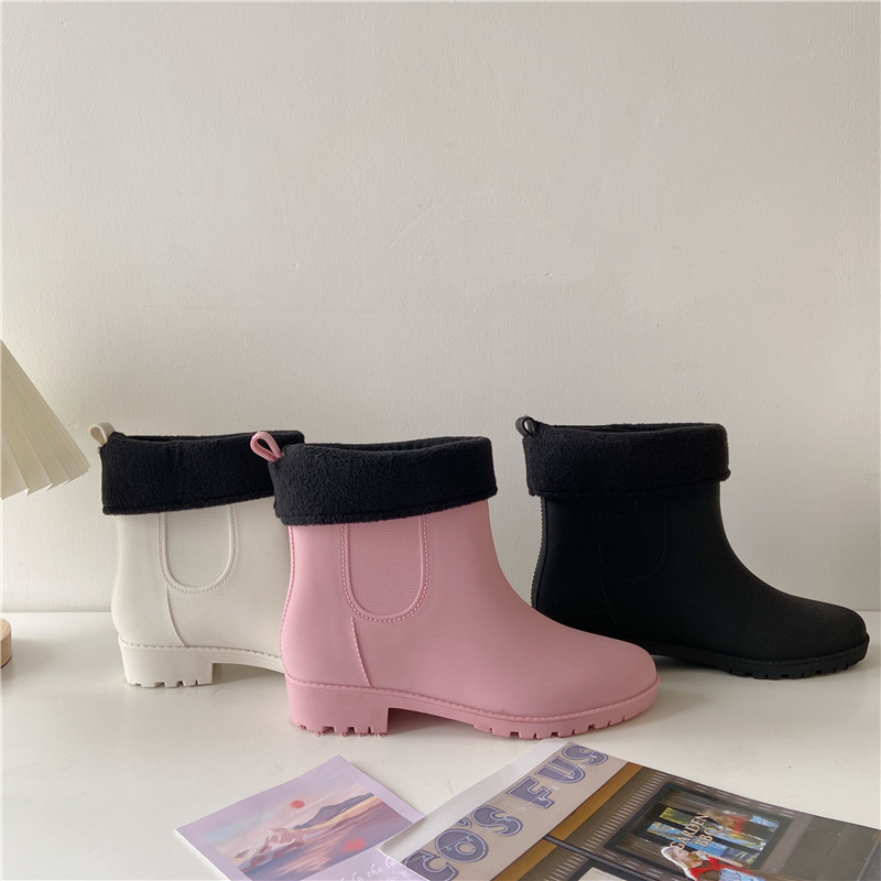 패셔너블한 여성용 야외용 레인부츠, 성인용 숏 레인부츠, 방수 덧신, 미끄럼 방지, 플러스 벨벳 워터부츠, 고무신, 다용도 워터슈즈