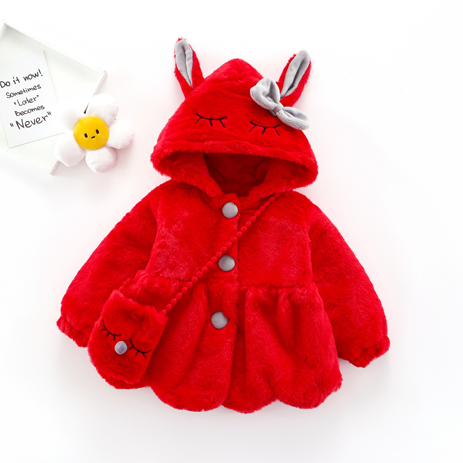 872 겨울 새 아동복 도매 여자 긴 소매 후드 코트 두꺼운 스웨터 토끼 귀 코트스토어 가기