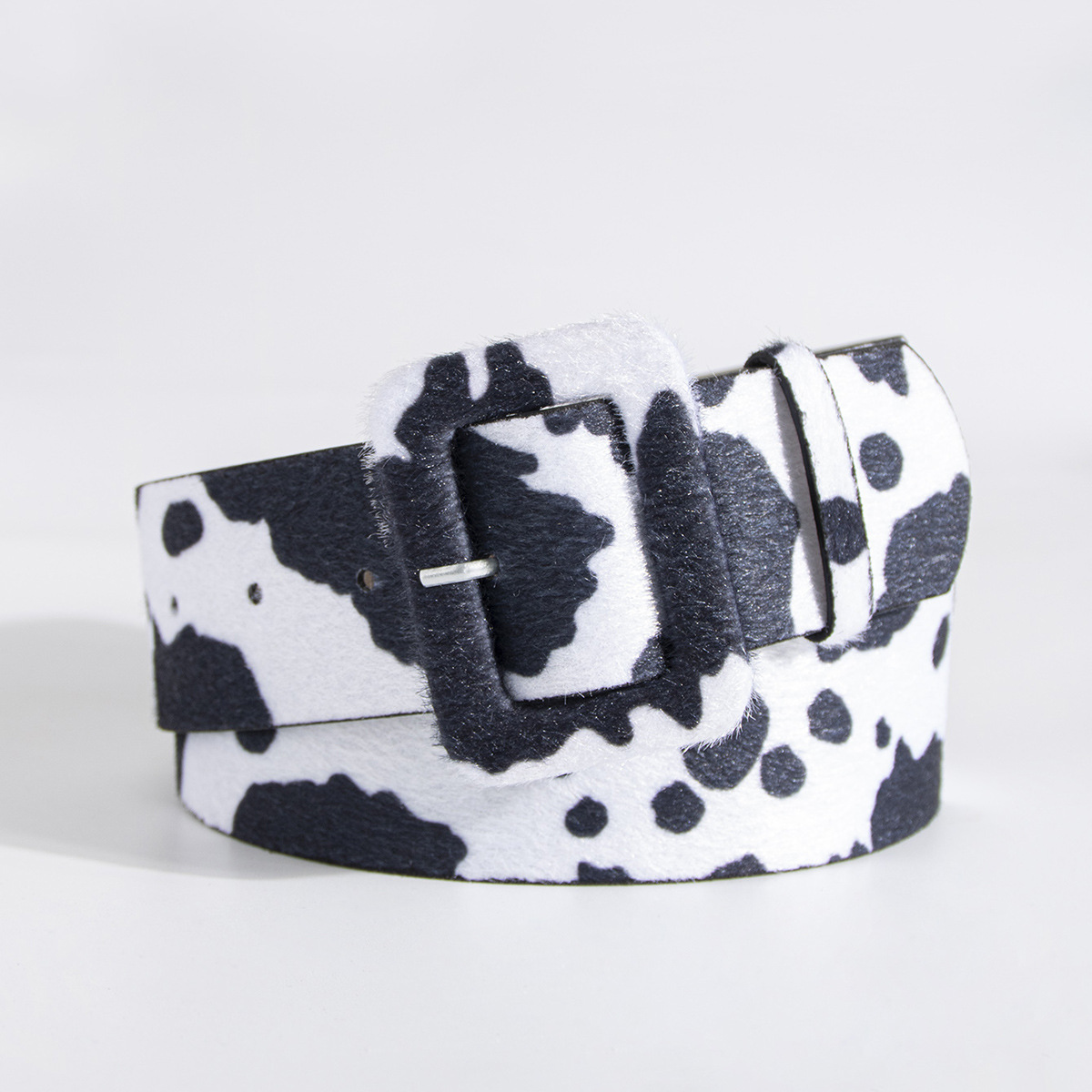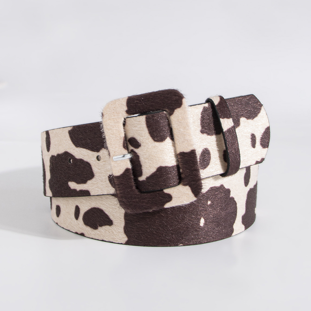 Y2K Young Girls 모든 매치 모조 말 헤어 밀크 패턴 벨트 크로스 보더 와이드 다크 브라운 헤어 백 버클 재고 여성용 벨트스토어 가기