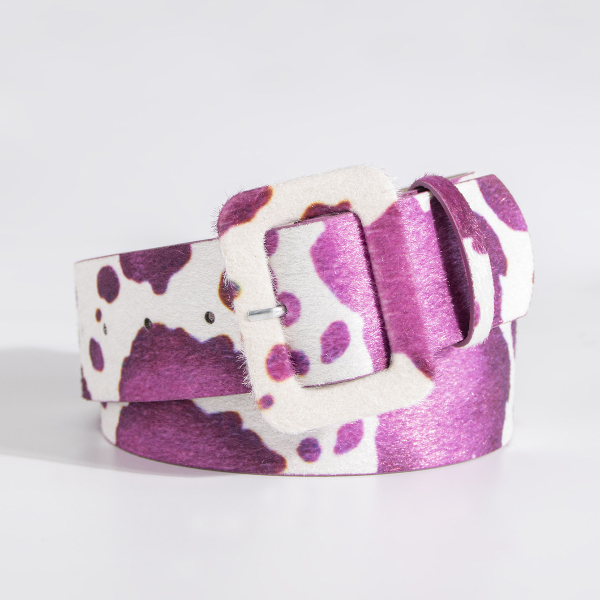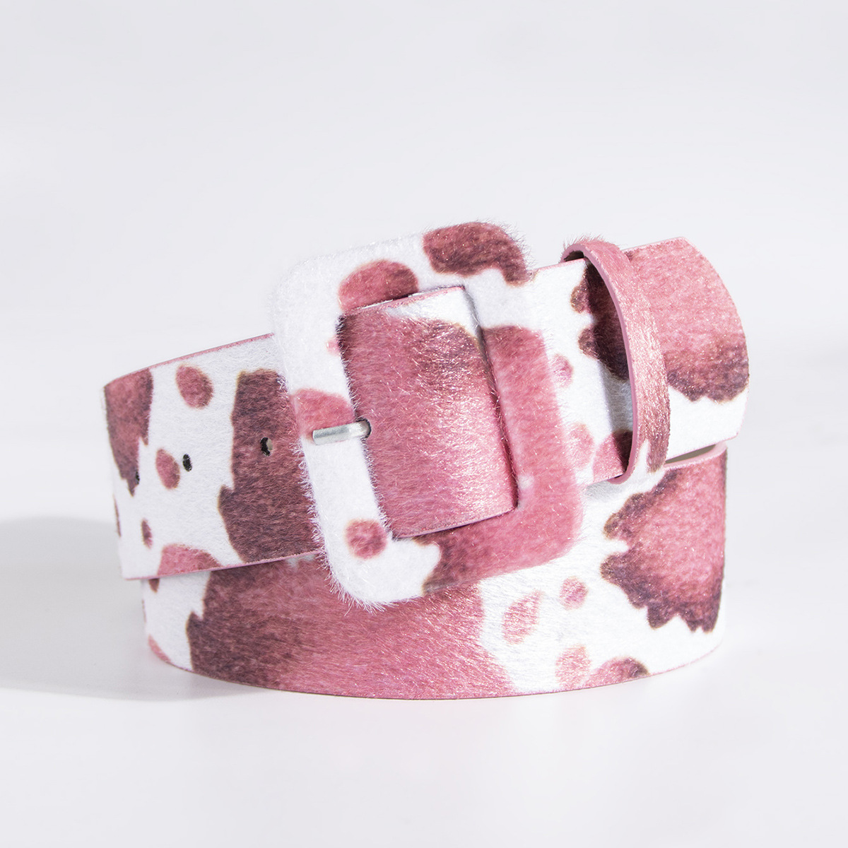 Y2K年轻女孩百搭仿马毛奶牛纹腰带跨境宽棕色毛毛包扣女士现货皮带