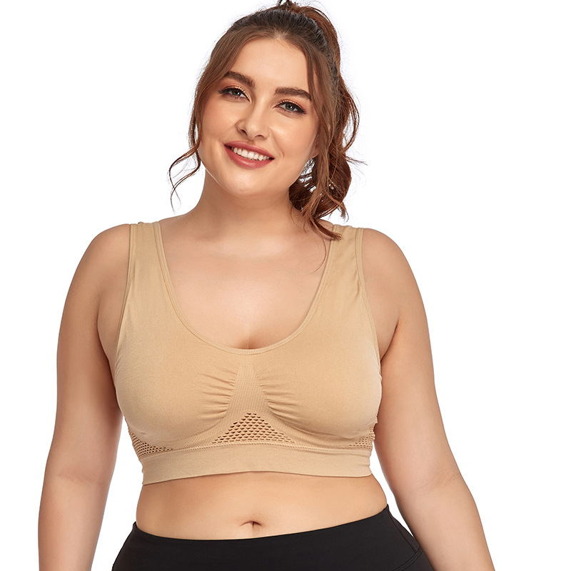 유럽과 미국 크로스 보더 플러스 사이즈 새로운 중공 메쉬 스포츠 속옷 여성용 No 스틸 링 충격 방지 요가 러닝 스포츠 브라스토어 가기